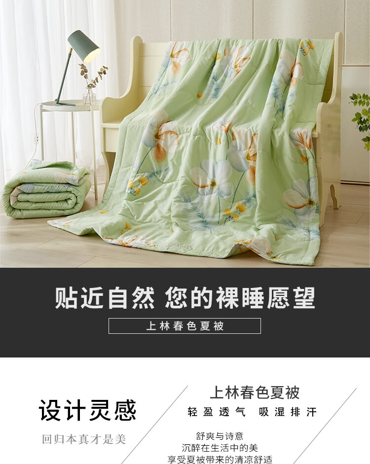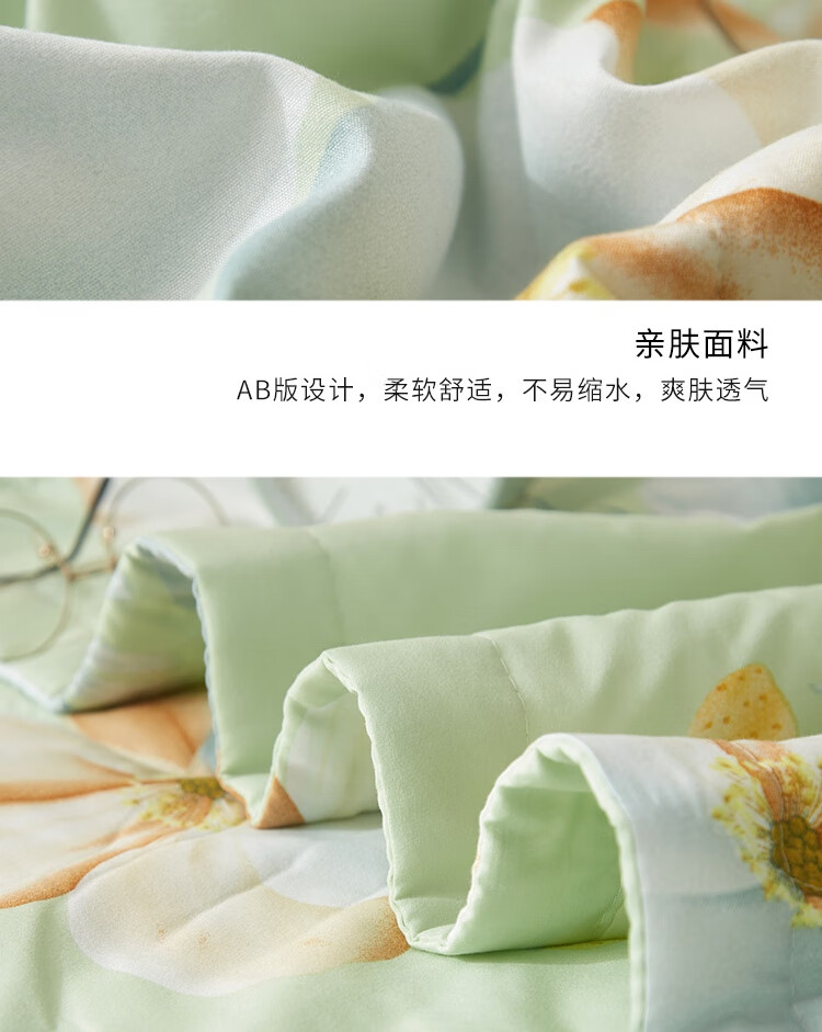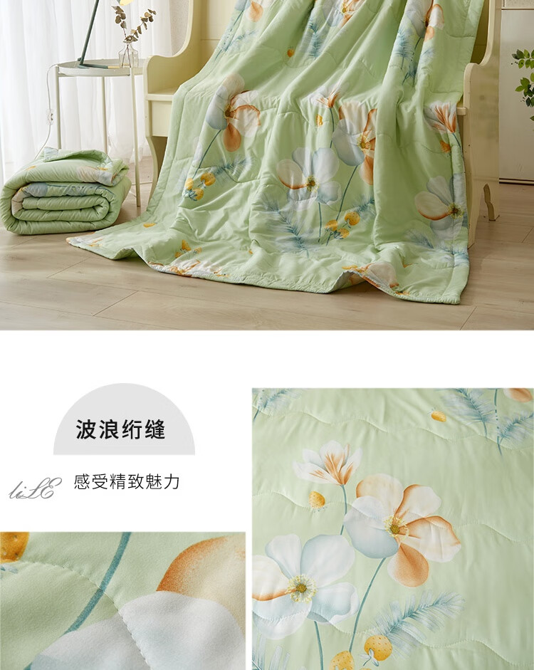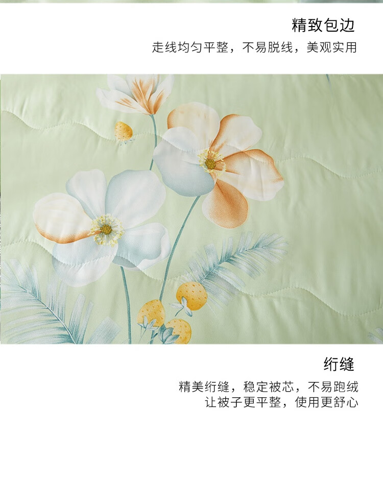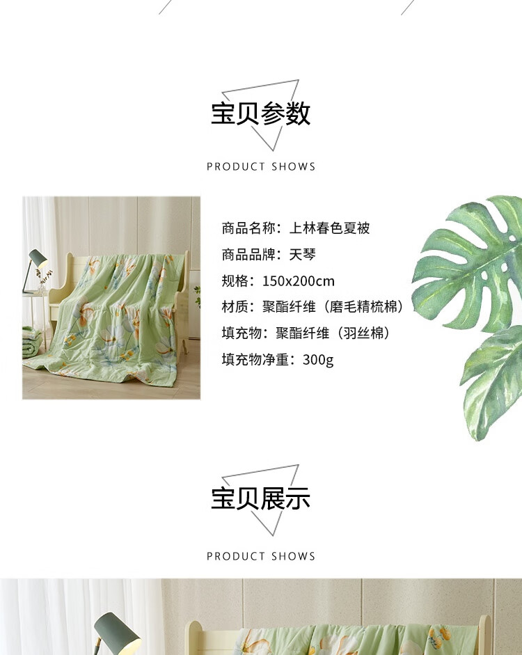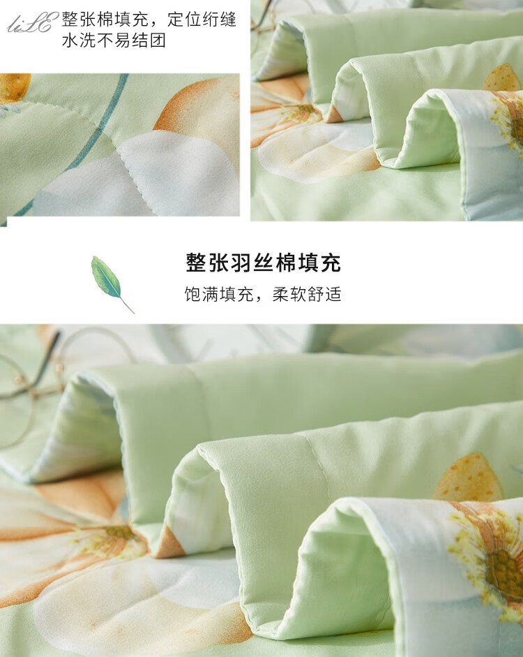 规格:150x200cm 材质:聚酯纤维(磨毛精梳棉) 填充物:聚酯纤维(羽丝棉) 填充物净重:300g