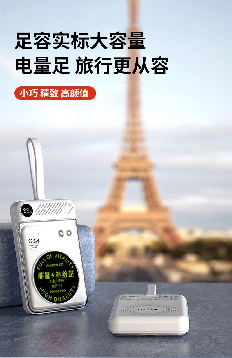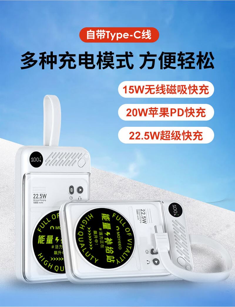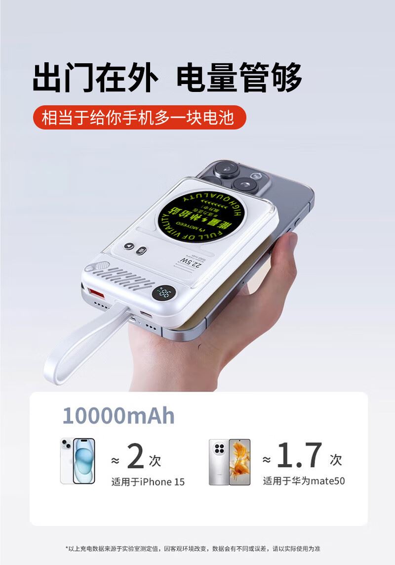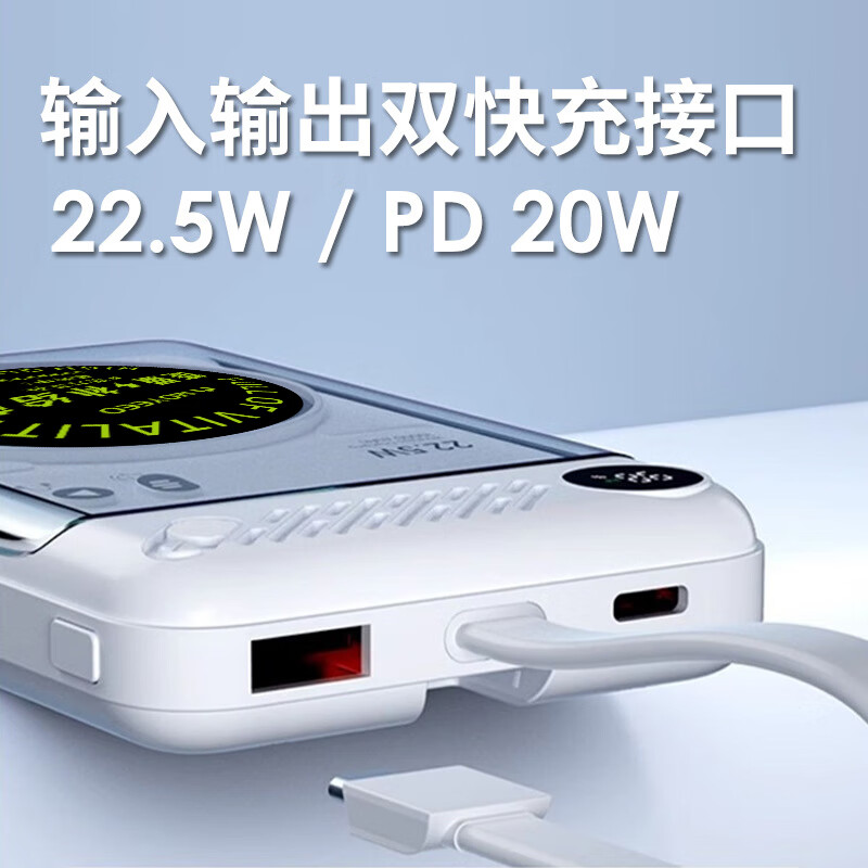 型号:PK005 容量:10000mAh(38.5Wh) 颜色:白色 材质:ABS+TPE线 产品尺寸:113*70*18.6mm 包装尺寸:168*103*36mm 产品重量:200g