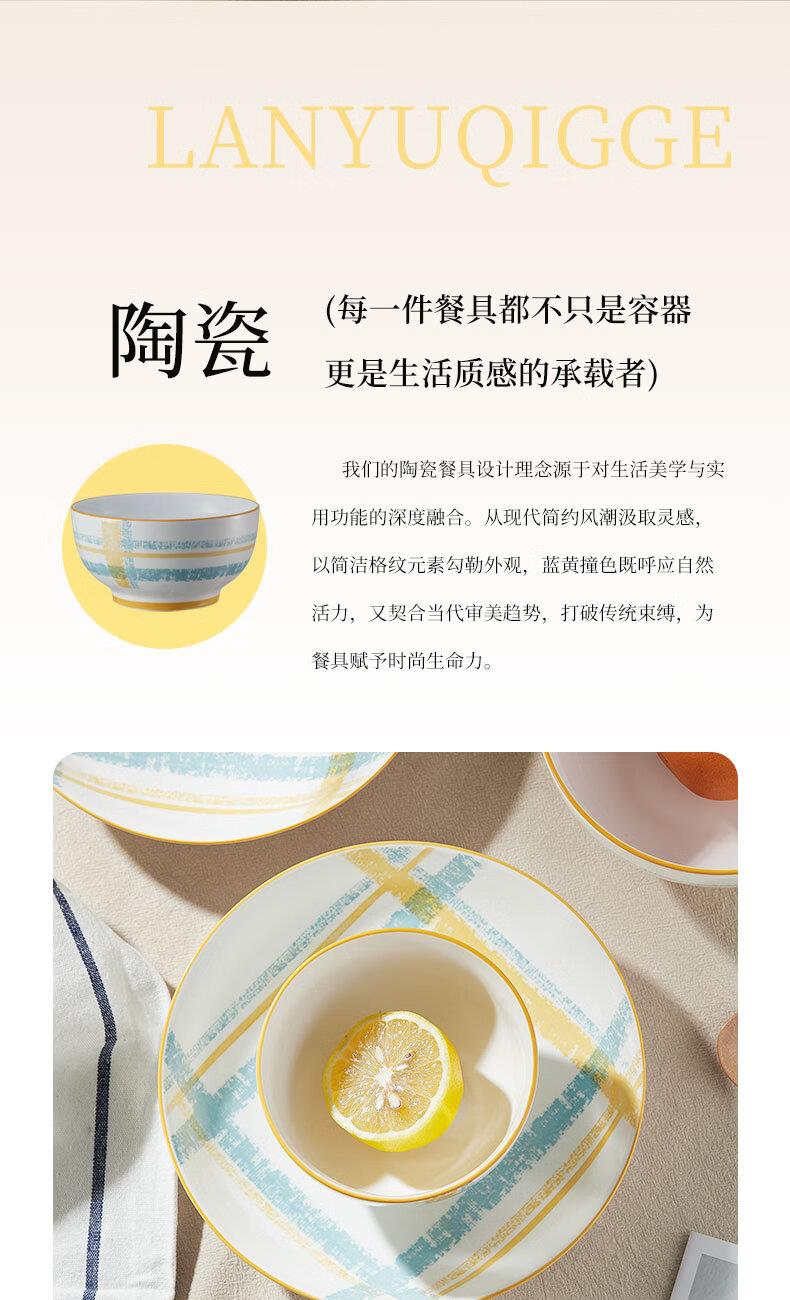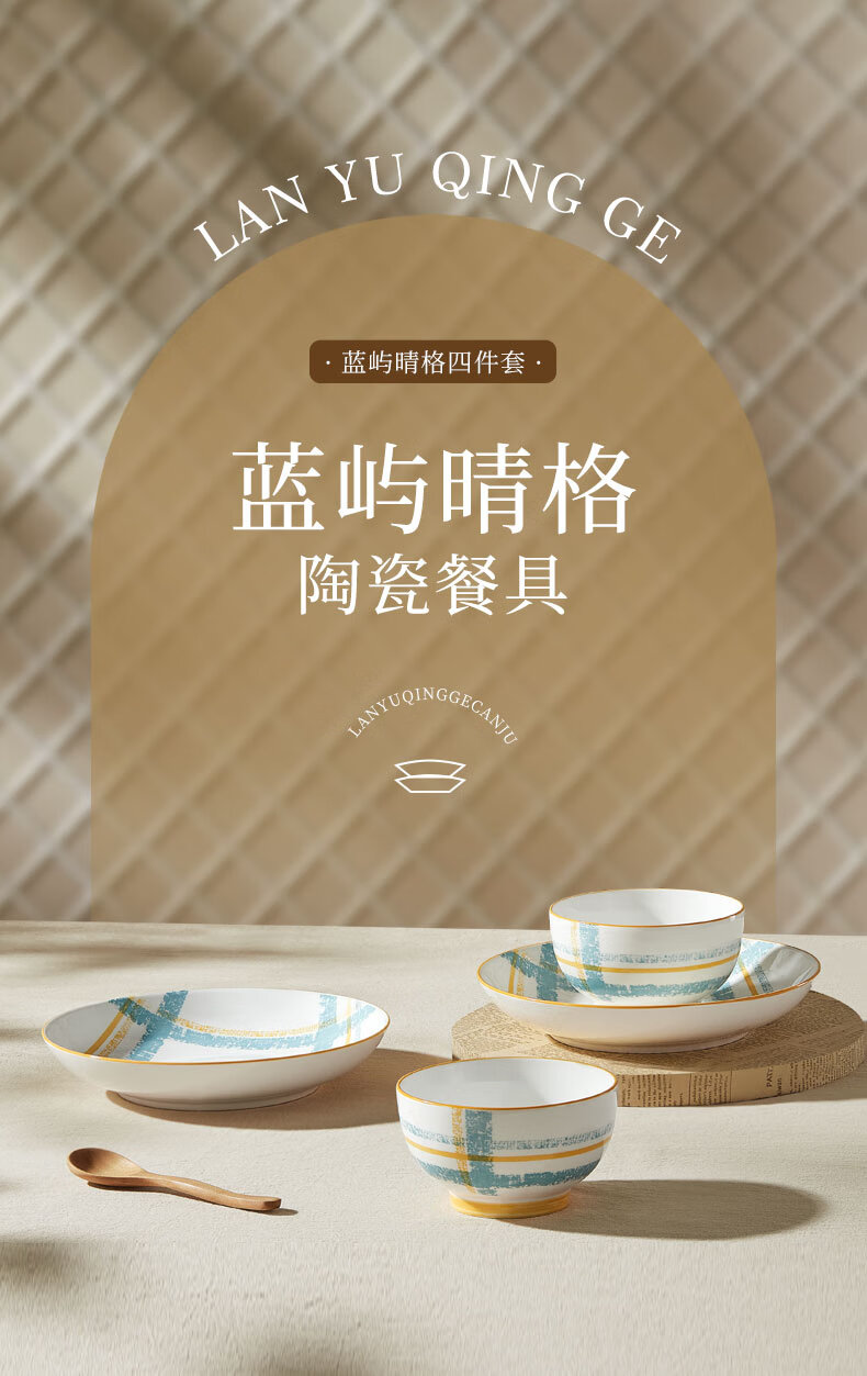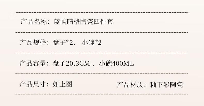 BAILOCK蓝屿晴格陶瓷餐具四件套Y-LY/L4