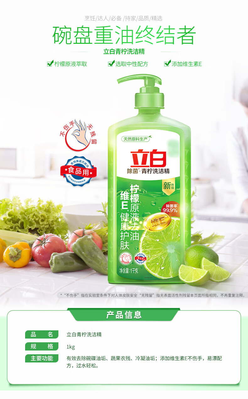立白青柠洗洁精1kg瓶装