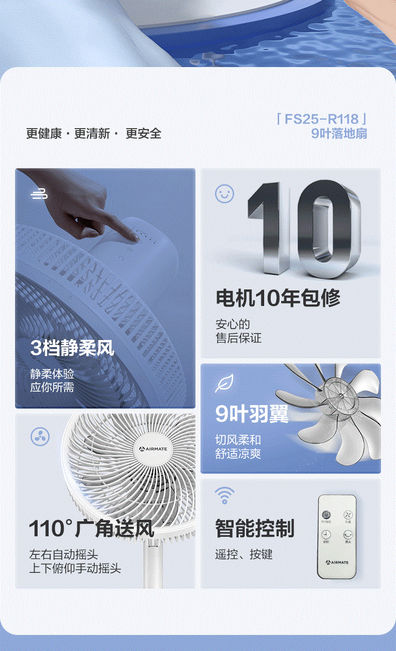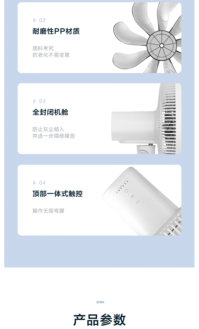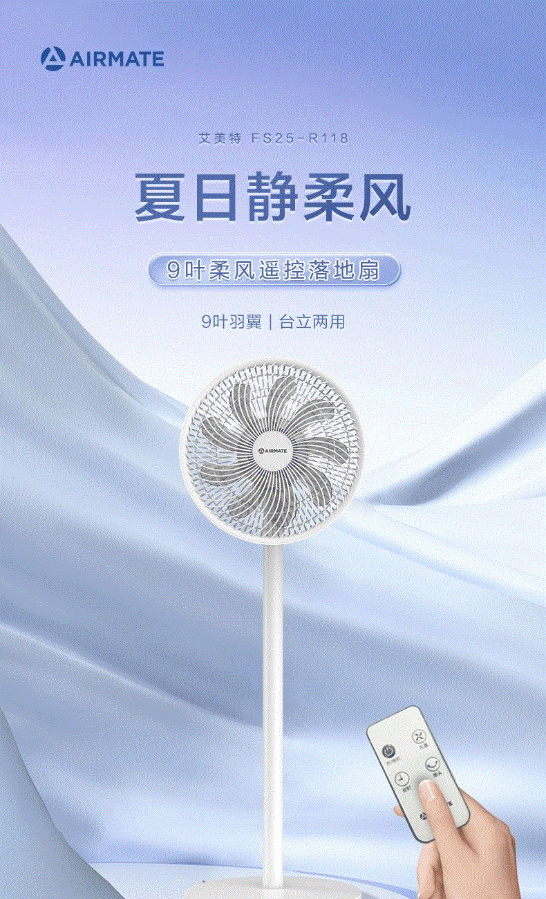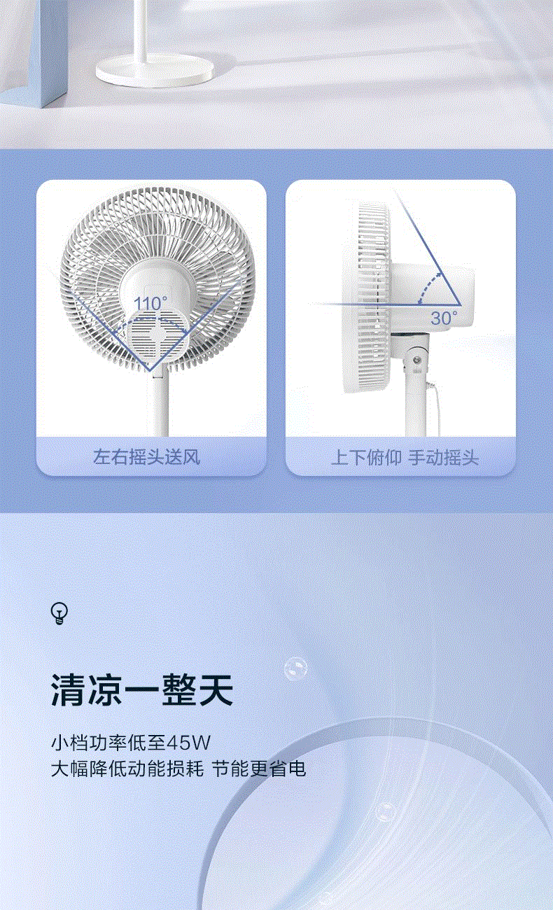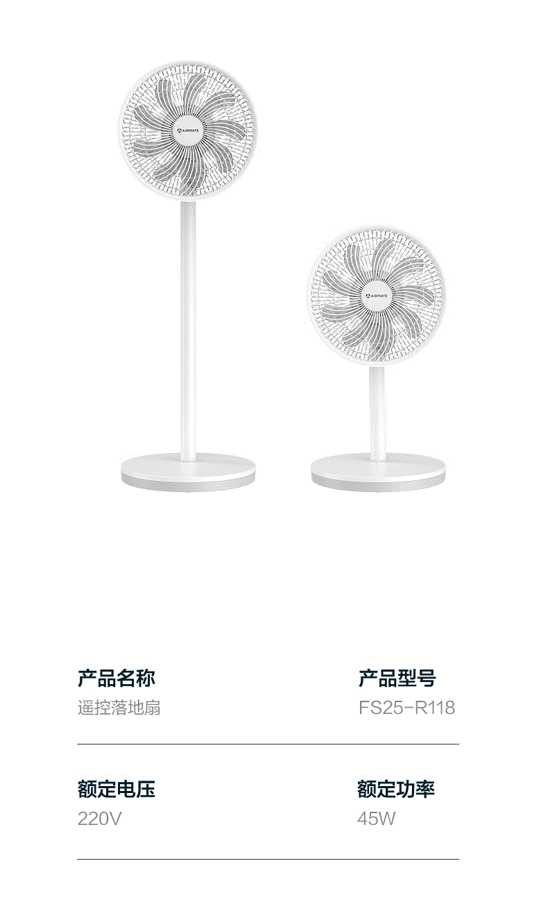 额定功率:45W 额定电压:220V 控制方式:遥控/触控 风扇叶片:9叶 产品档位:3档调节 高度:落地94cm/台式51cm
