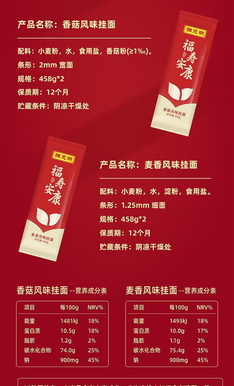 香菇风味挂面458g*2 麦香风味挂面458g*2