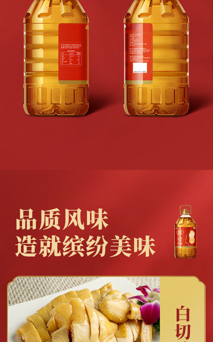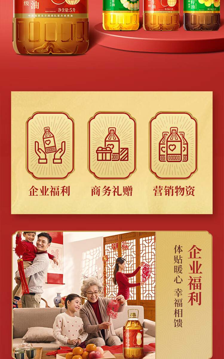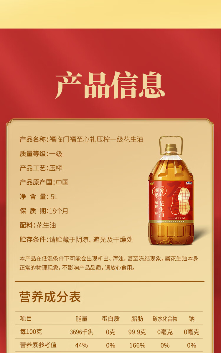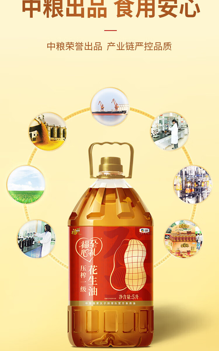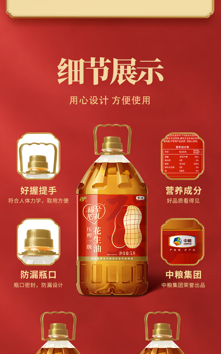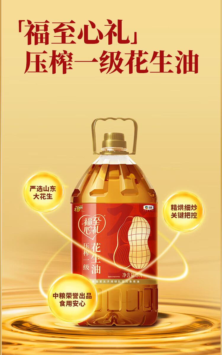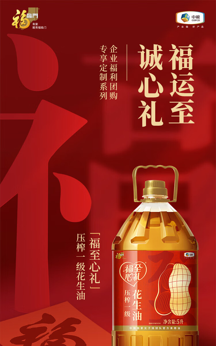中粮福临门福至心礼压榨一级花生油5L