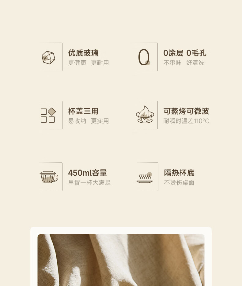 产品型号:CL-CJ550P009C 产品材质:早餐杯、碟子:高硼硅玻璃;勺子:304不锈钢 包装方式: 彩盒+邮购盒 条形码:6979489300335 产品尺寸: 全尺寸: 156*136*112mm;杯口径123mm,碟口径136mm,;勺子长13.3mm 包装尺寸:395*197*200mm 产品净重: 毛重:2kg 装 箱数:6套 /箱