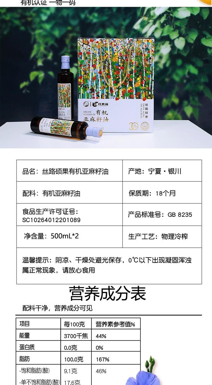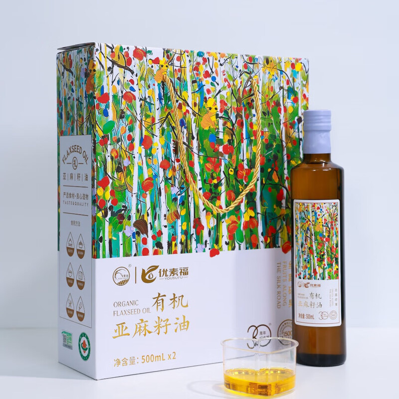 影田X优素福丝路硕果有机亚麻籽油500ml2礼盒装