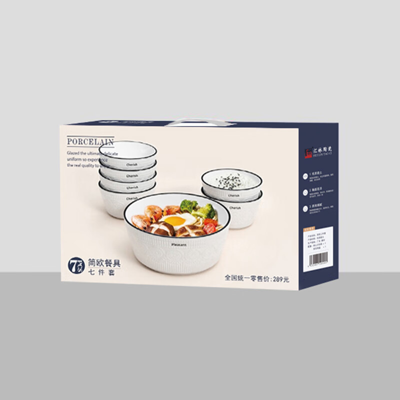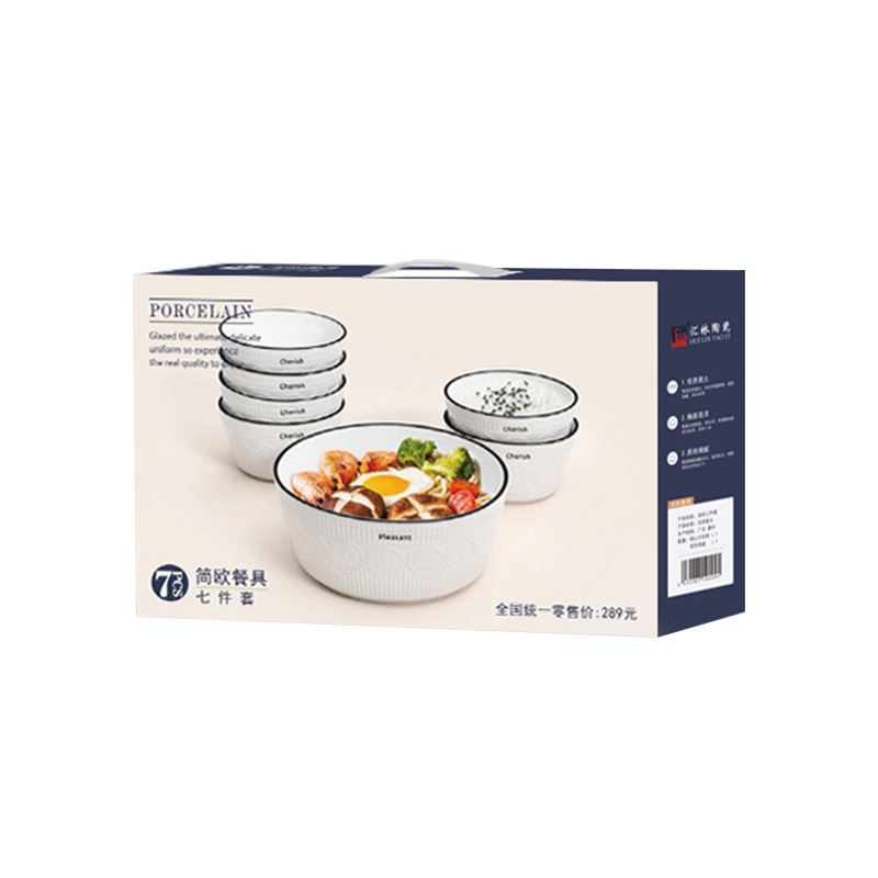产品材质:陶瓷 产品规格:4.5寸饭碗 * 6 7寸汤碗 * 1 彩盒尺寸:41.4x12.2x21.5