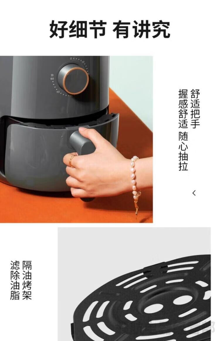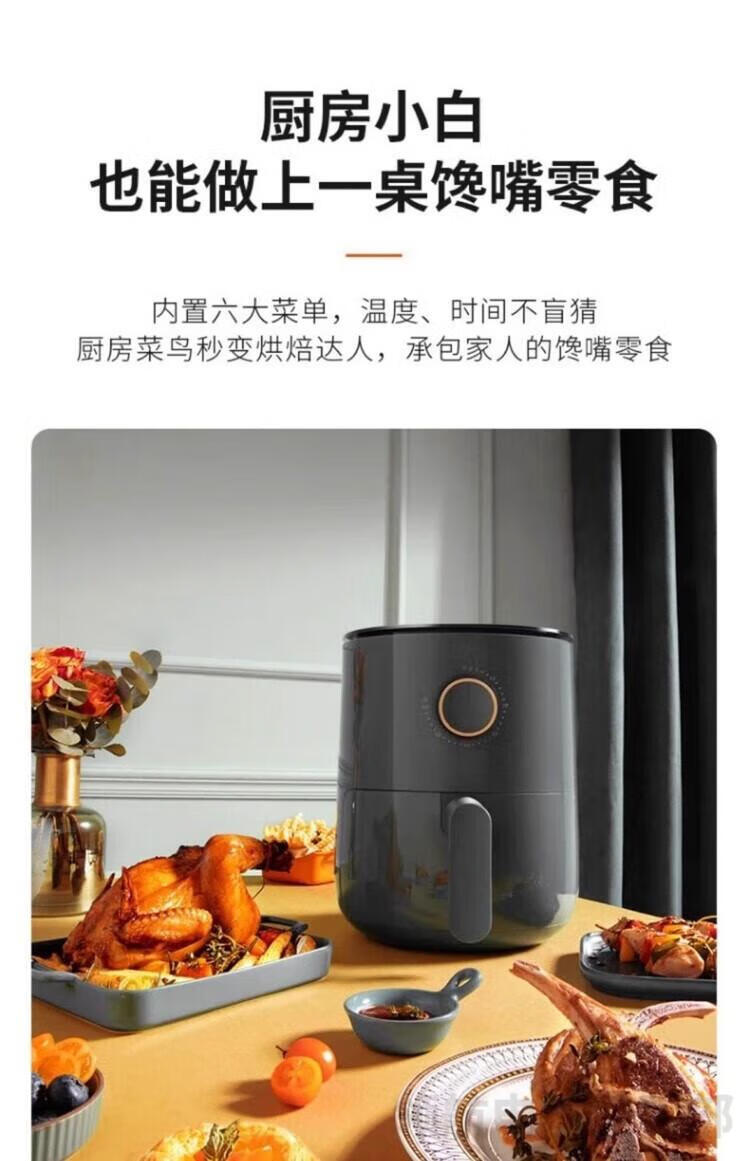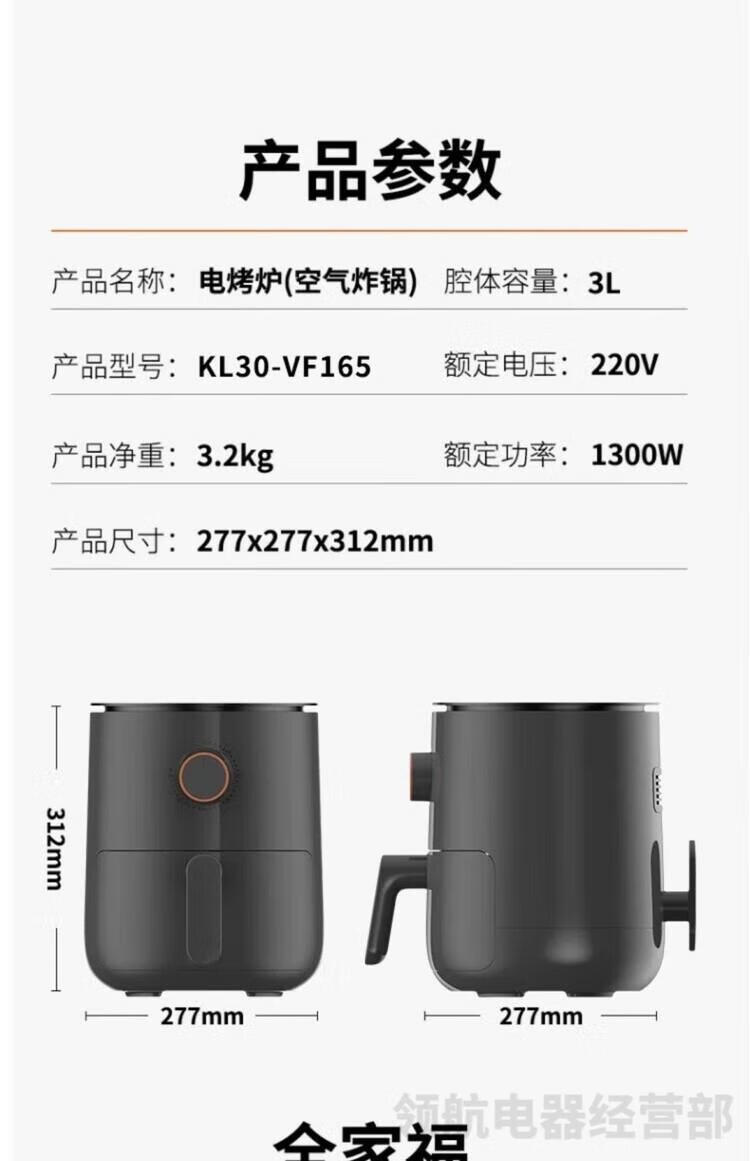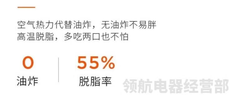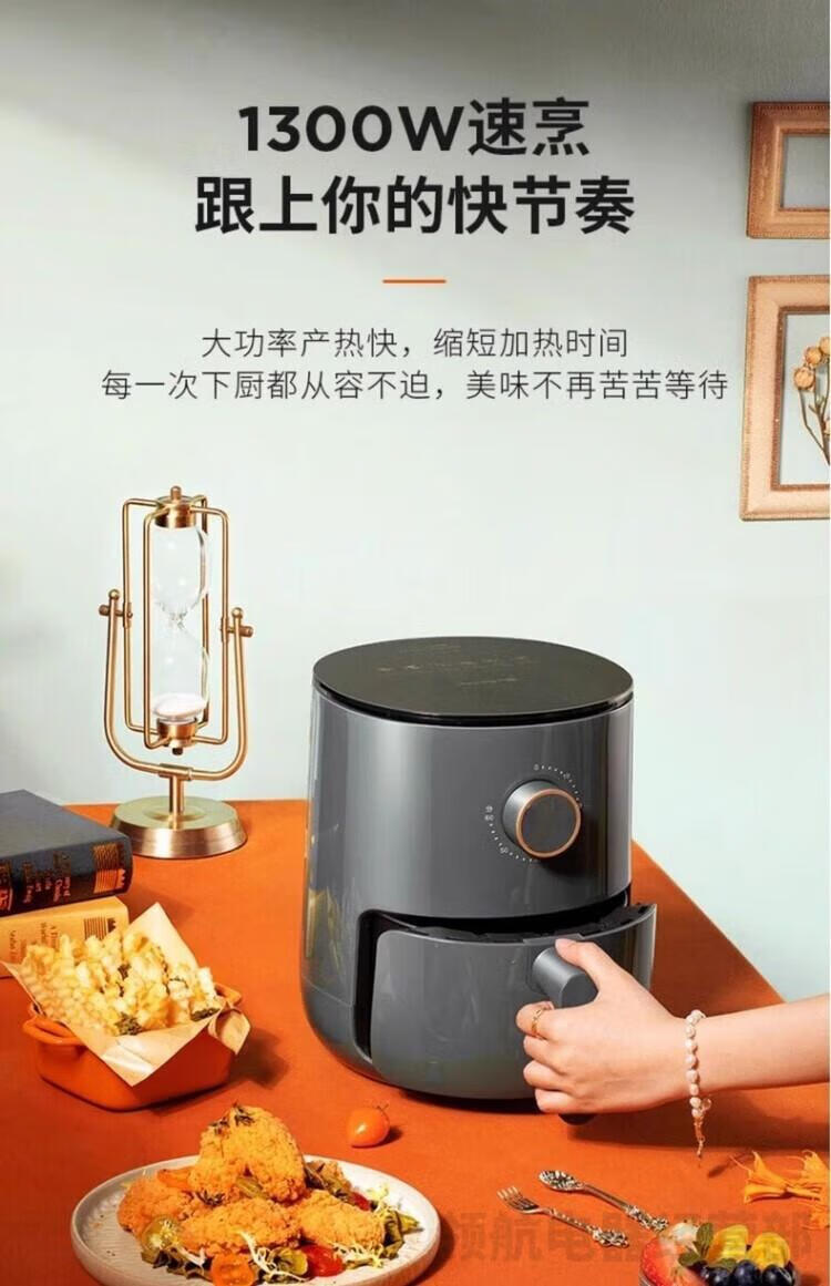 1、3.L大容量 1300W大功率 2、无油烹炸,蒸汽嫩烤 3、6大菜单,不粘易洁 4、360度空气循环,温度可调 5、烧烤、煎炸、烘焙、休闲均可