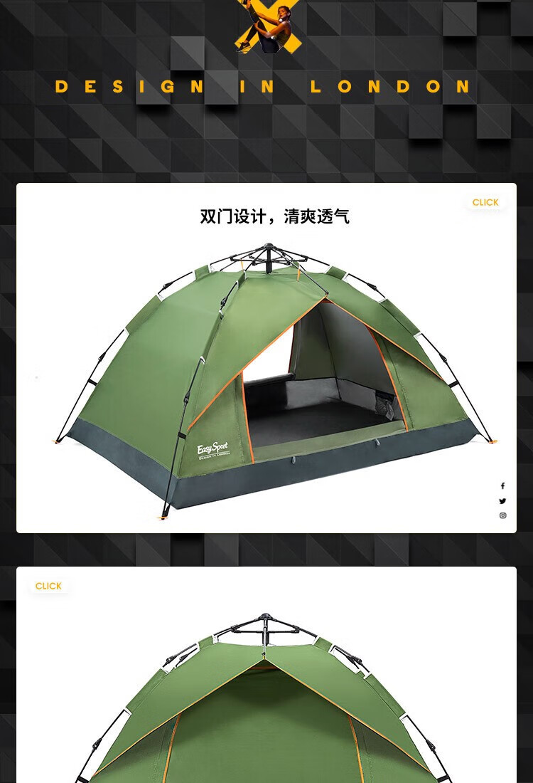 易威斯堡三人全自动速开帐篷ES-TN003
