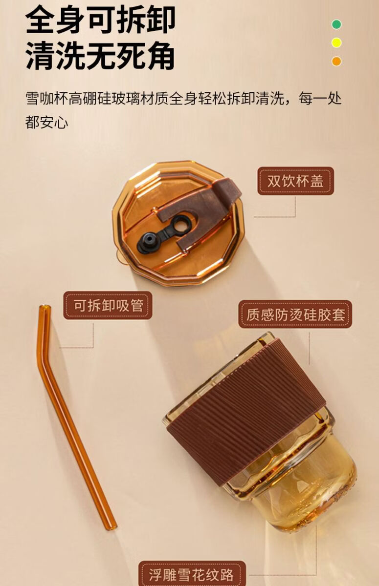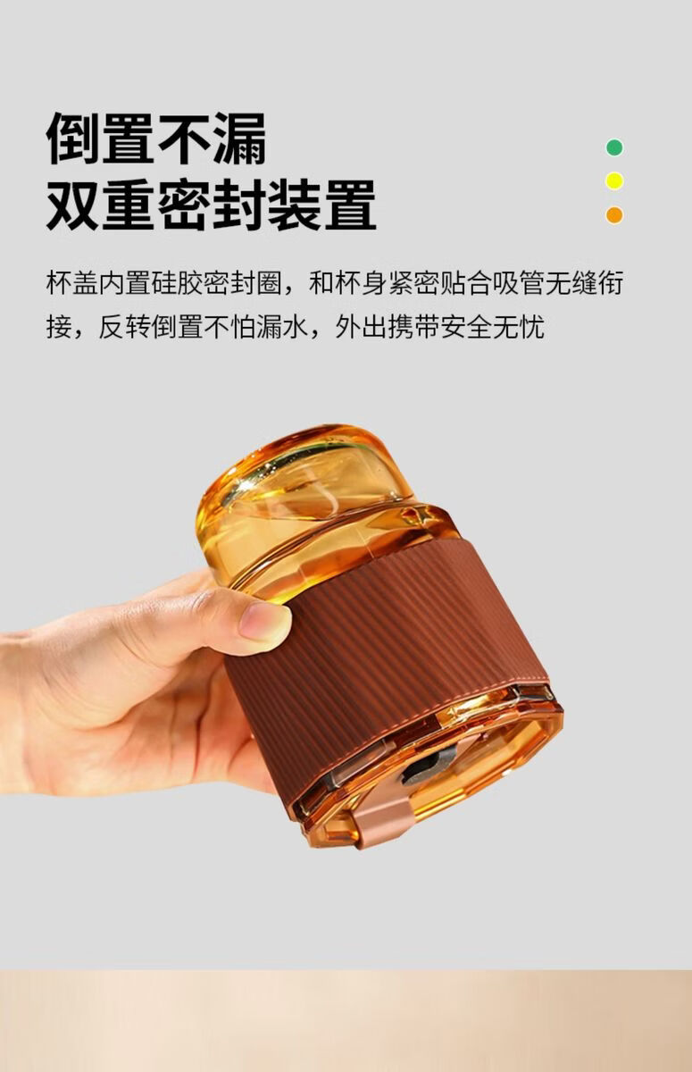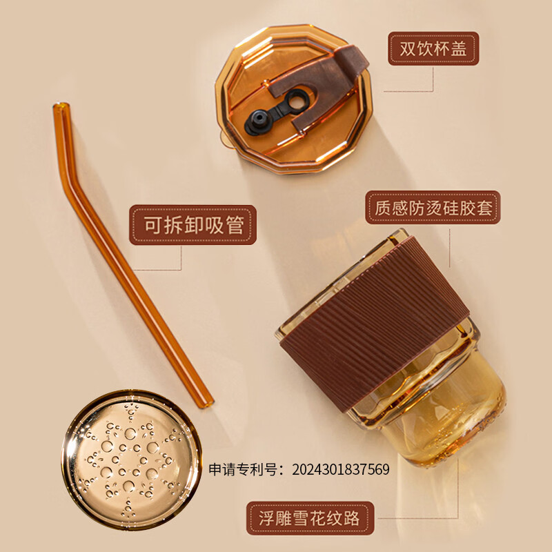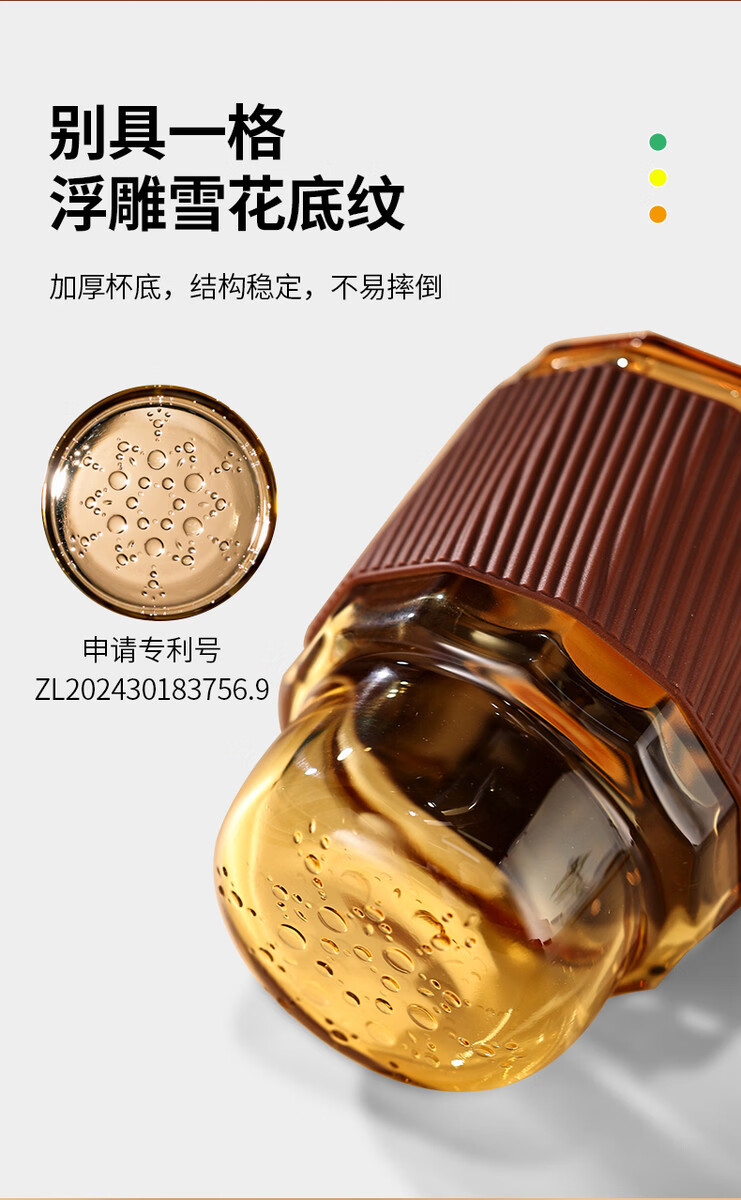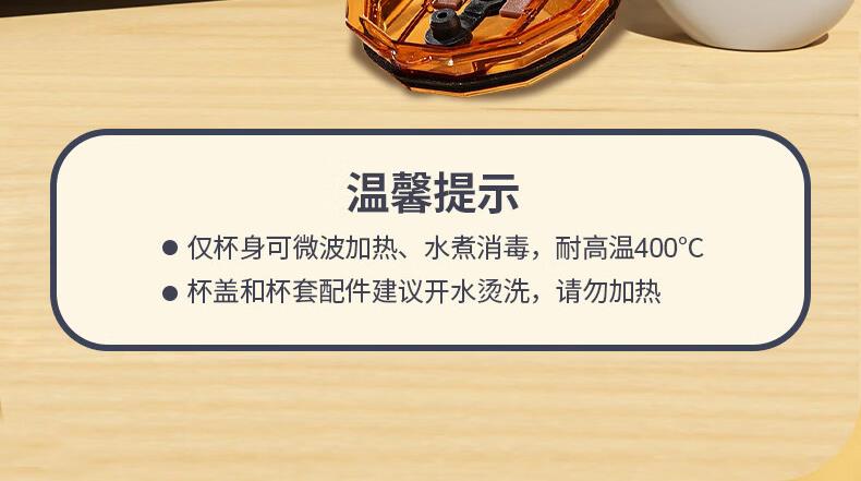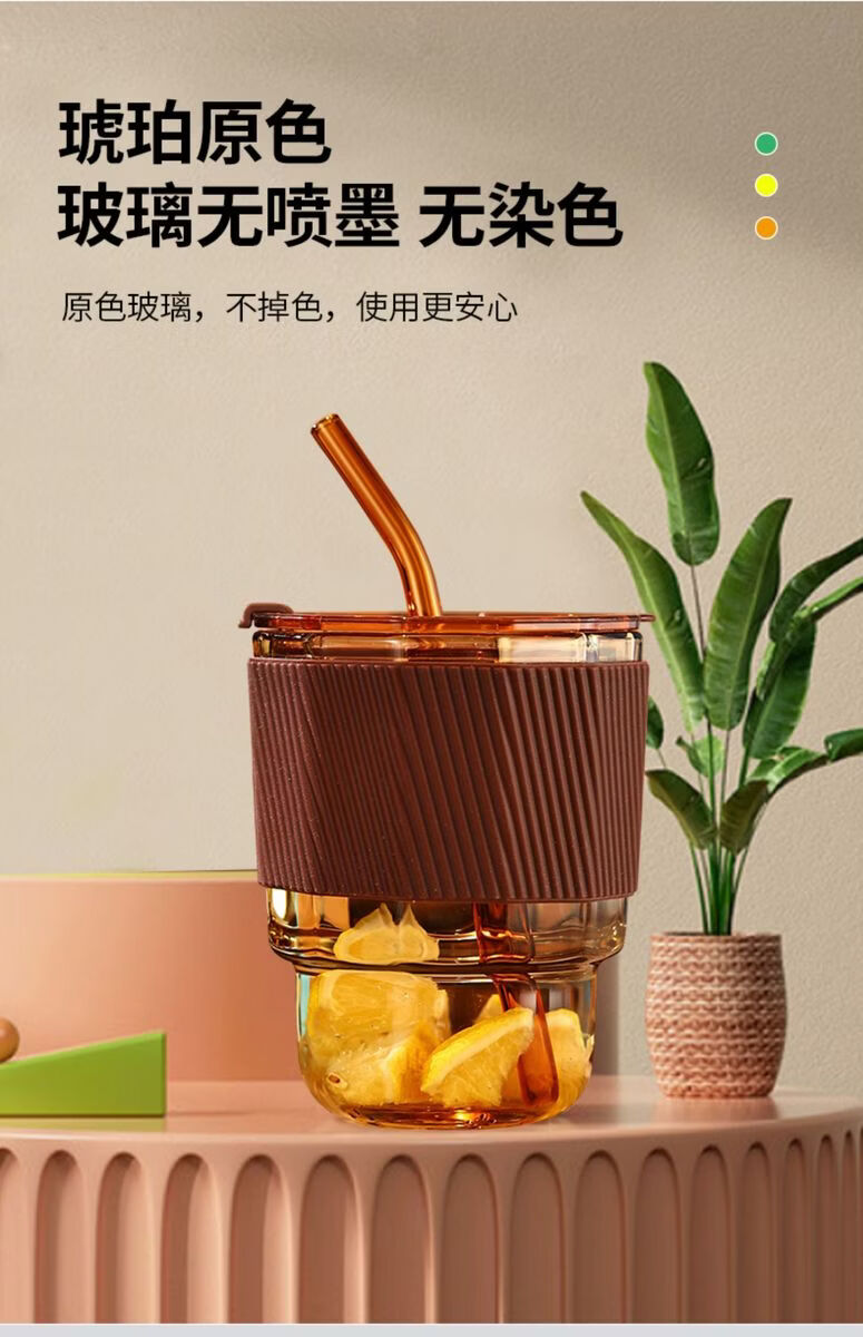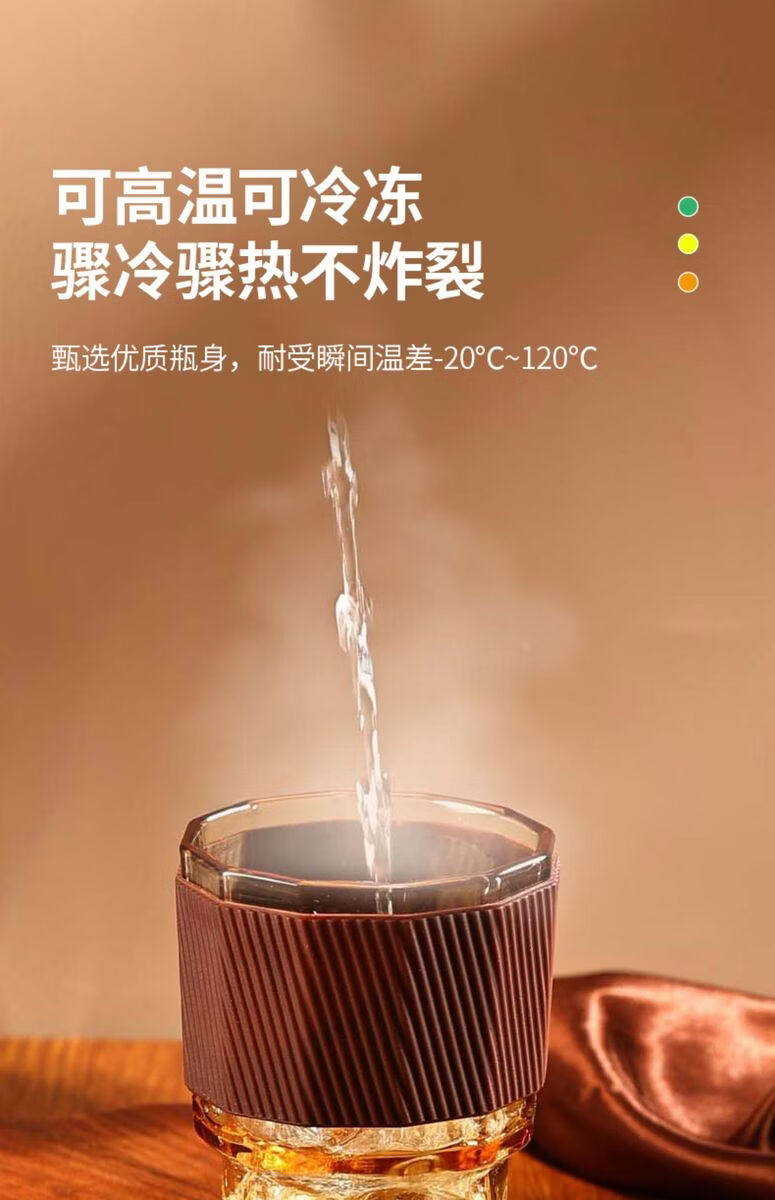 容 量:360ml 材 质:高硼硅玻璃琥珀原色玻璃+硅胶皮圈 尺 寸:D86 x108mm 装 箱数量:48套 /箱 颜 色:琥珀色 产品条码:6932968609190
