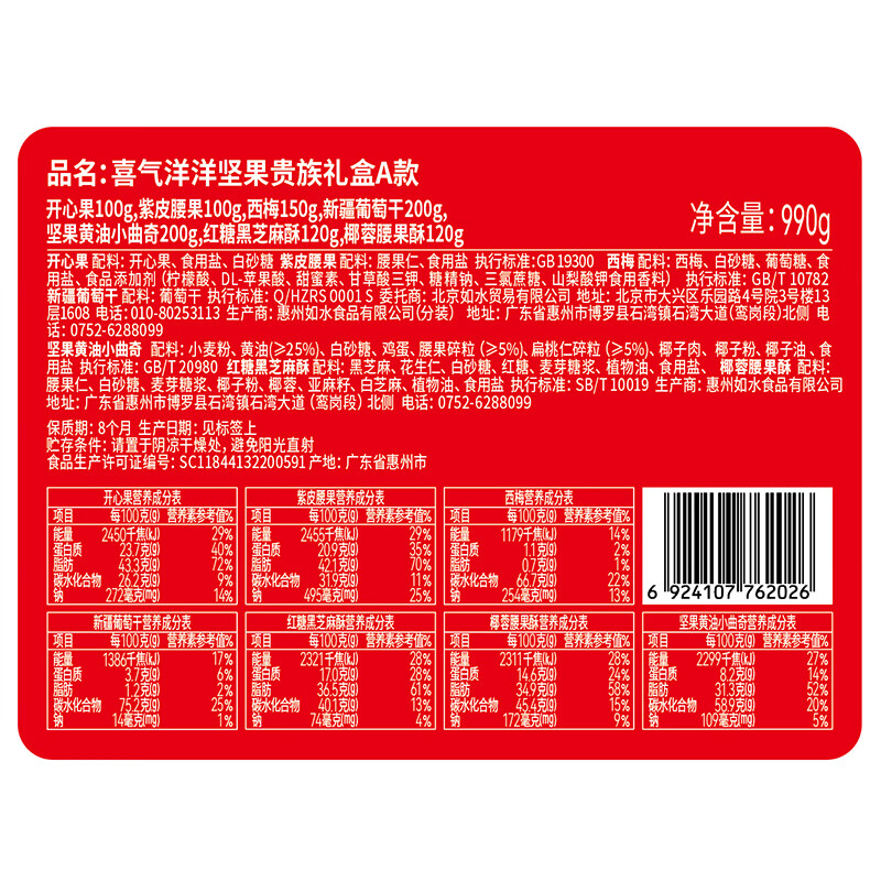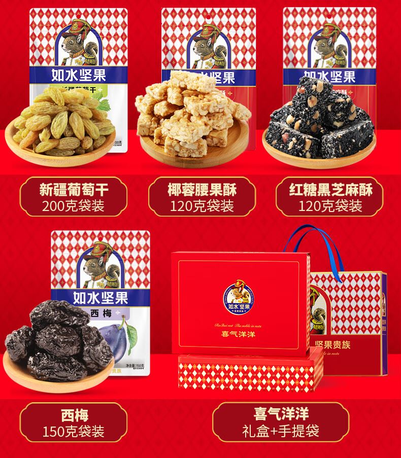 如水开心果100g 如水紫皮腰果100g 如水坚果黄油小曲奇200g 如水红糖黑芝麻酥120g 如水椰蓉腰果酥120g 如水西梅150g 如水新疆葡萄干 200g