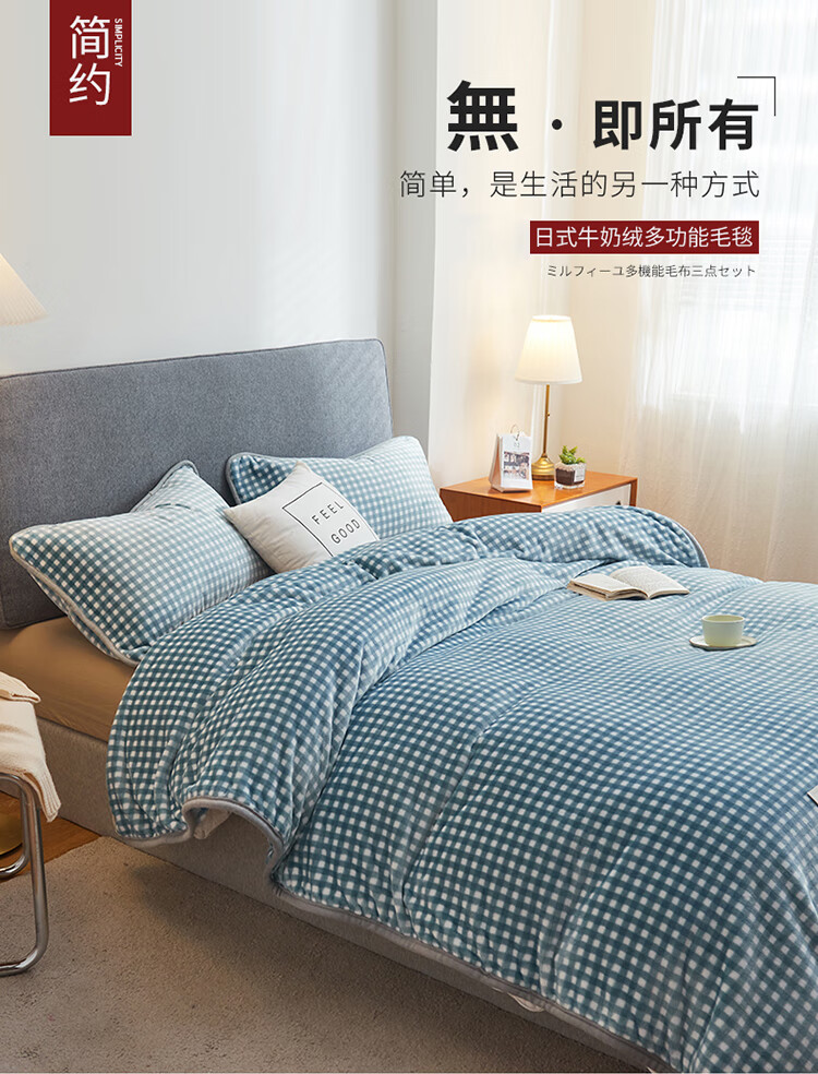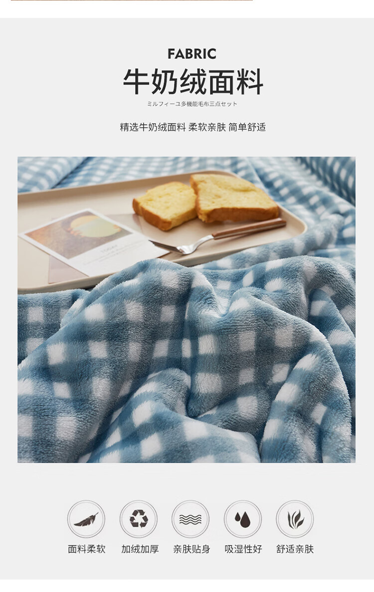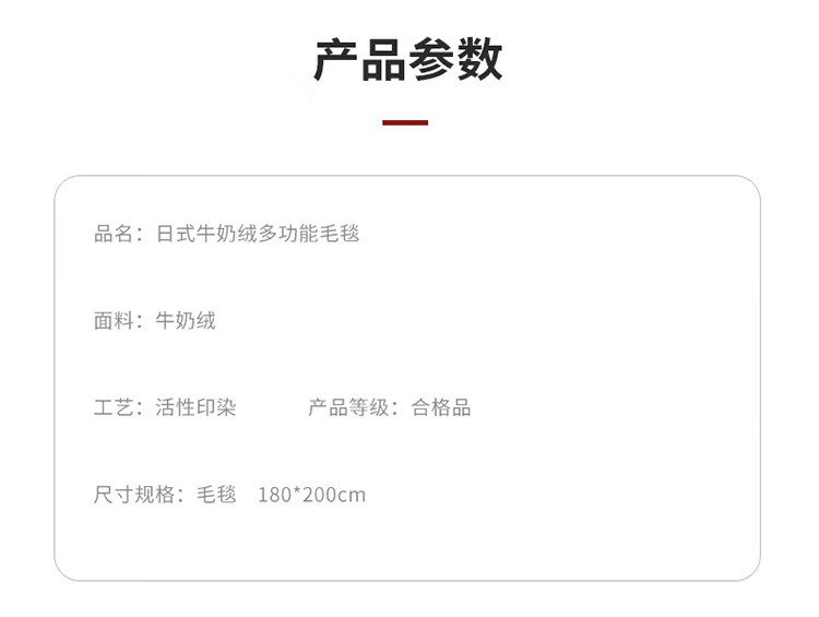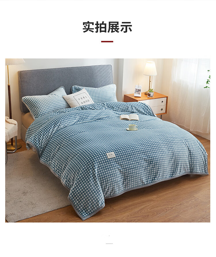 面 料: 牛奶绒 重 量: 1100g 规 格: 180*200cm 包 装: 手提盒