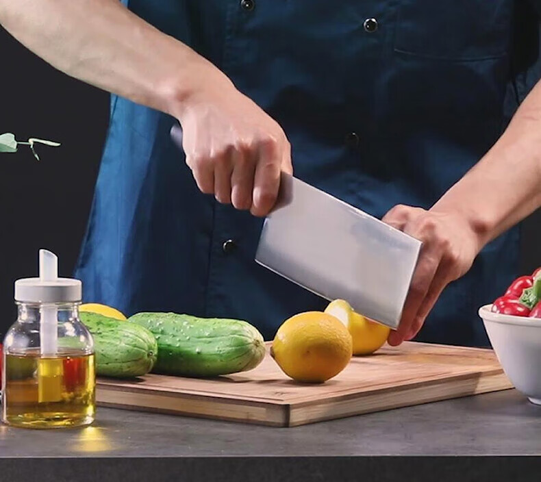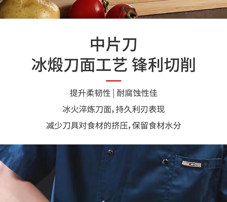 产品货号:54380-007-722 产品材质:中片刀材质 :马氏体不锈钢;砧板材质 :整竹 产品参数:砧板36×25.5×1.8cm 刀刃长度7英寸 包装尺寸:彩盒 42.5×25.8×5.5cm 装 箱明细:7pcs/箱