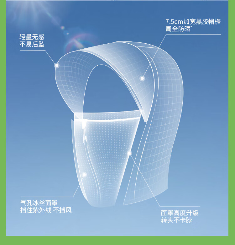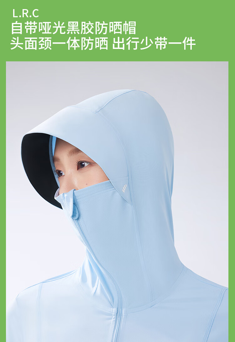 原纱防晒、防晒黑、抗光老 L.R.C自带哑光黑胶防晒帽、头 面 颈 手周全防晒 Airloop3.0专 利云朵原纱冰丝、防晒再突破、遮热更凉快