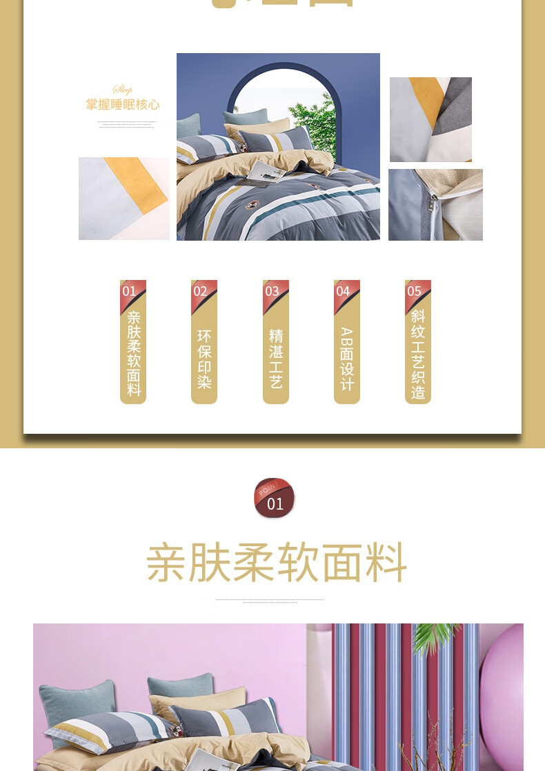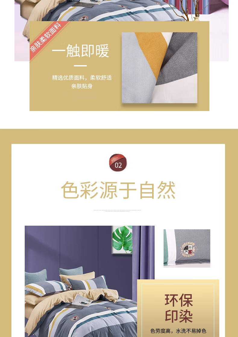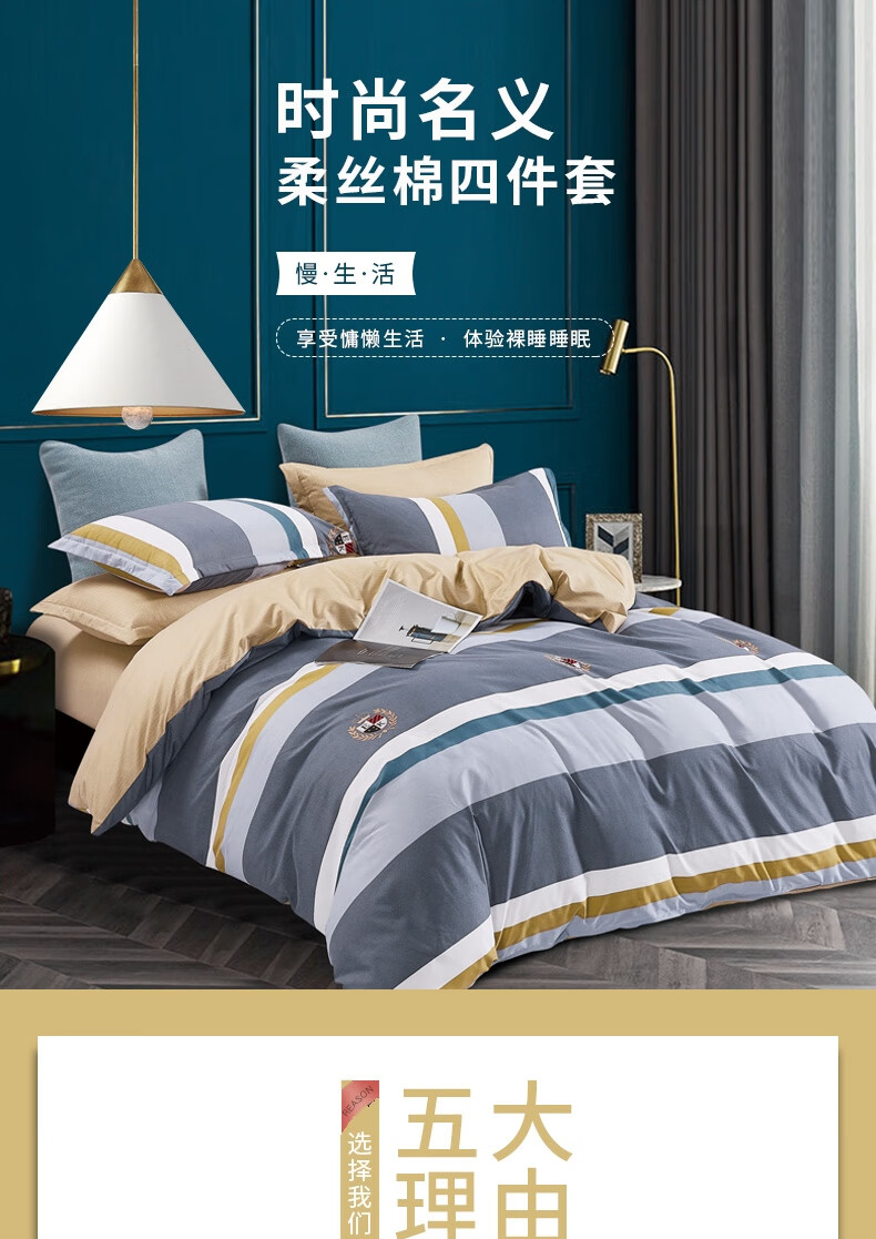 规格:床单:230x250cm 被罩:200x230cm 枕套:48x74cm*2 材质:聚酯纤维(柔丝棉)