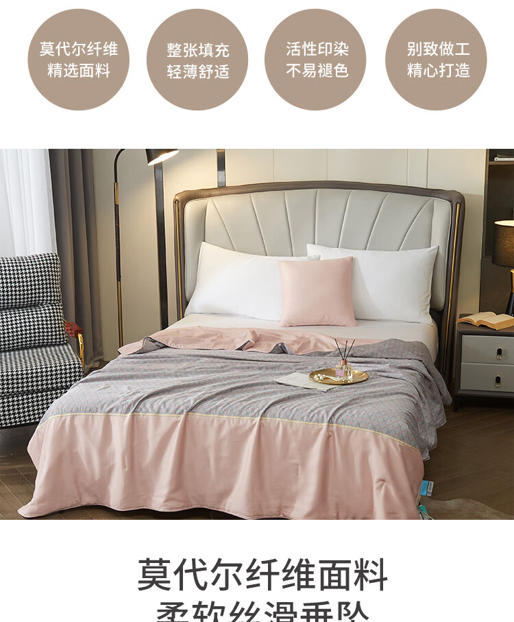 规格:200x230cm 材质:再生纤维素纤维(莫代尔) 填充物:聚酯纤维(羽丝棉) 填充物净重:500g