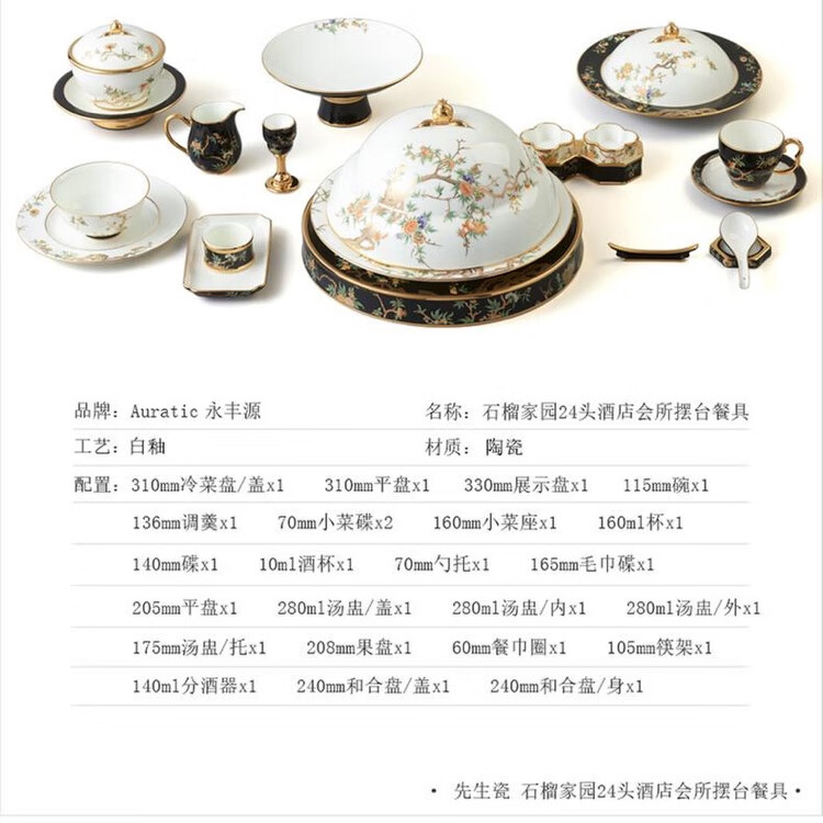 永丰源夫人瓷-石榴家园24头酒店会所摆台餐具