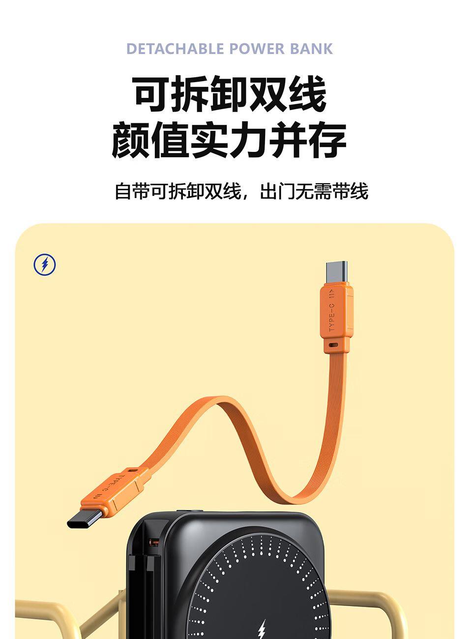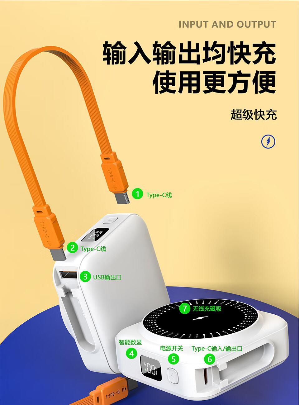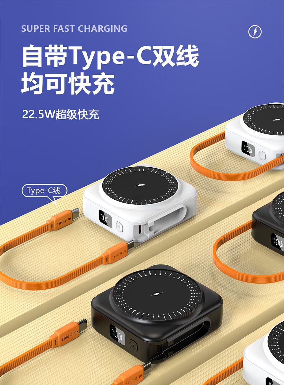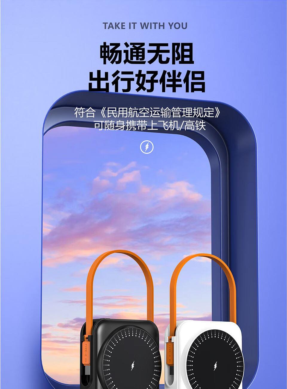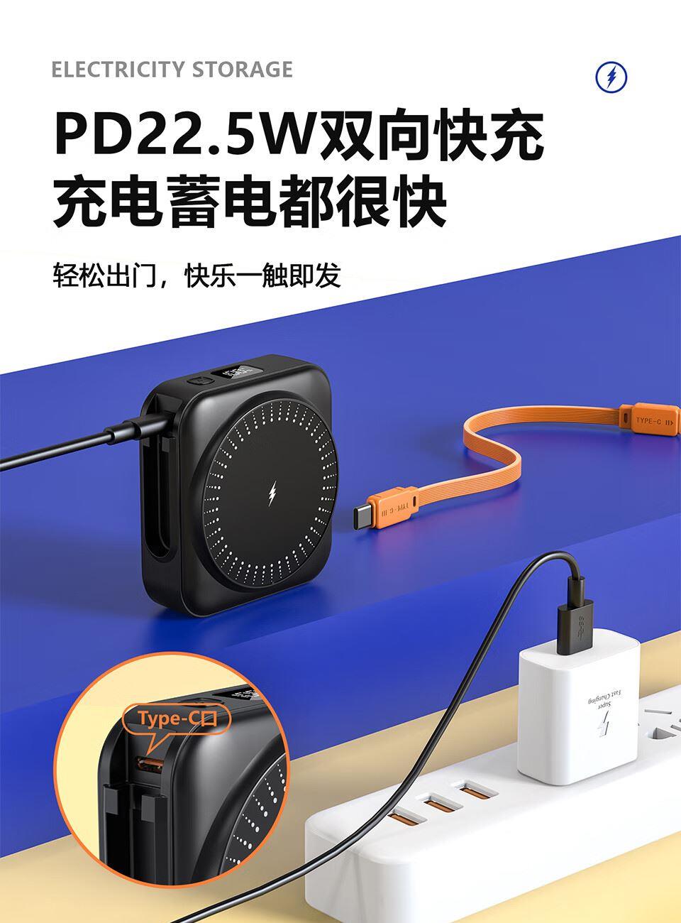 USB-C 接口支持双向快充 外壳材质:ABS+PC