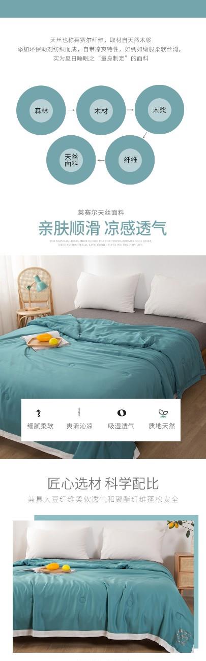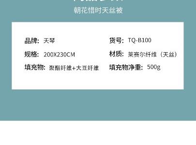 规格:200x230cm 材质:莱赛尔纤维(天丝) 填充物:聚酯纤维+大豆纤维 填充物净重:500g