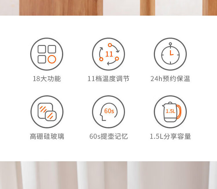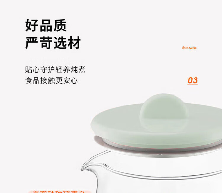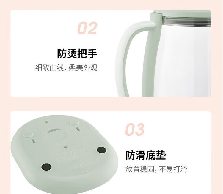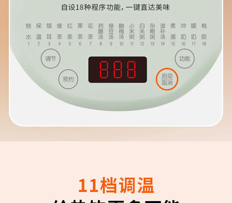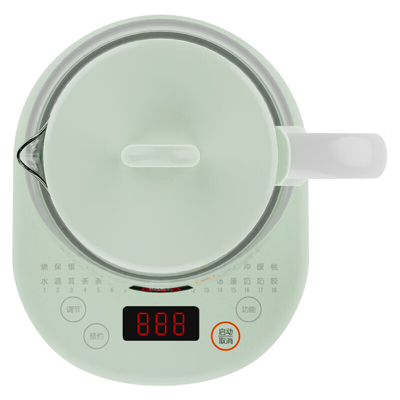 1、12大功能,三种烹煮功能 2、1.5L大容量 3、食品级不锈钢发热盘 4、高硼硅玻璃壶身 5、智能触碰面板 装 箱:12台/箱