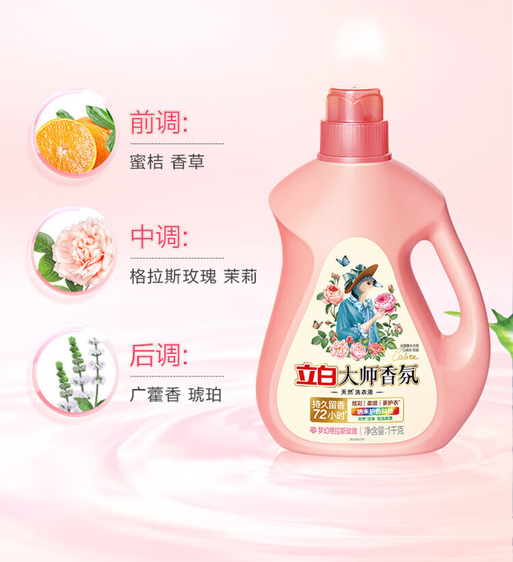 【套装配置】(香型随机/新老包装随机) 1.立白大师香氛天然洗衣粉350g*1 2.立白大师香氛天然洗衣皂208g*1 3.立白大师香氛天然洗衣液1kg*1 4.蔬果园茶香泡泡洗手液500ml*1 5.蔬果园阳光松木洁厕剂(强效去垢型)505g*1 6.唐茜珊瑚绒速干手帕巾*1 7.立白大师香氛精美彩盒*1
