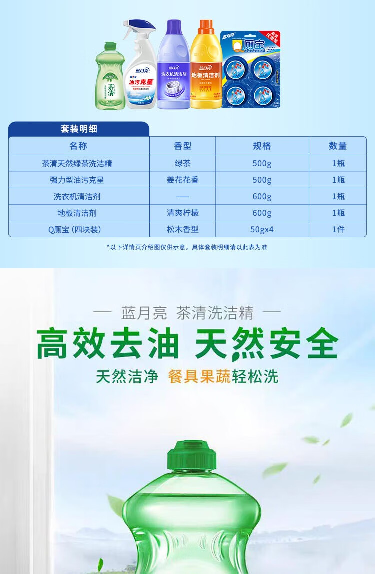 茶清洗洁精500g*1 除 菌地板清洁剂600g*1 强力型油污克星500g*1 洗衣机清洁剂600g*1 松木q厕宝50g*4