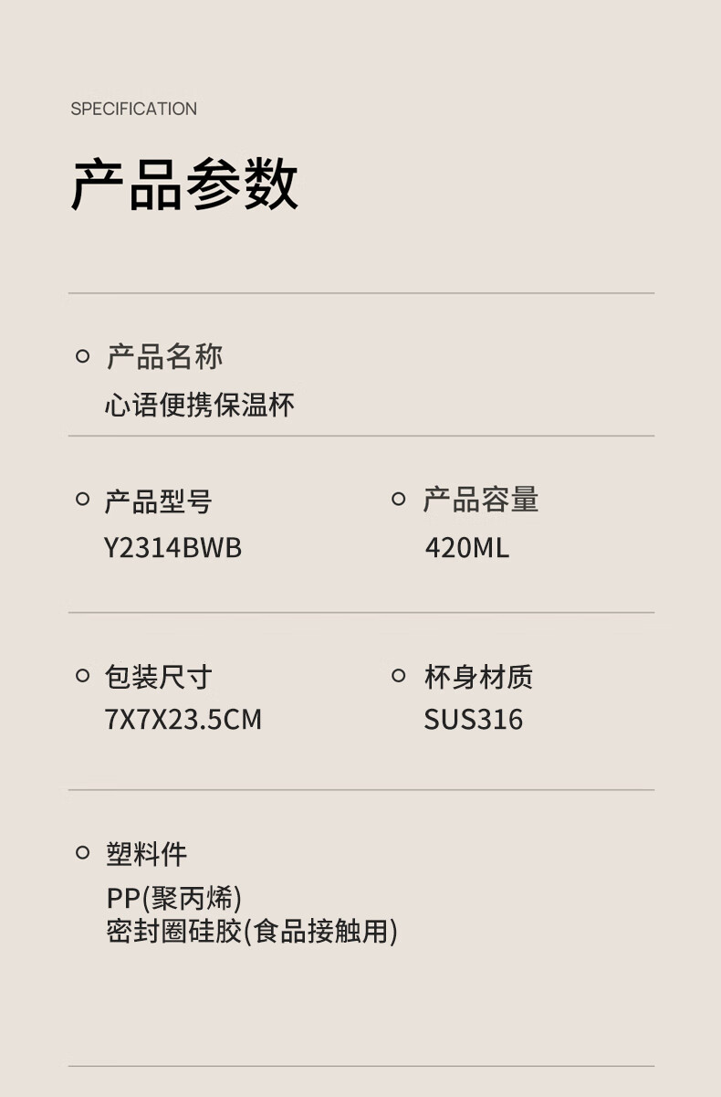 产品容量:420ML 杯身材质:SUS316