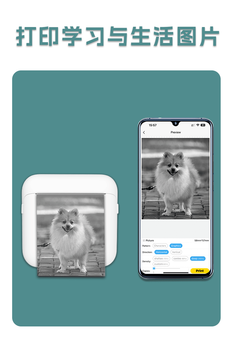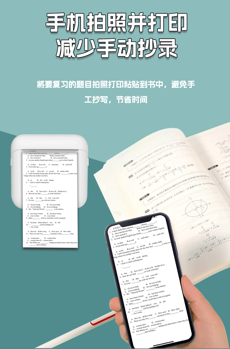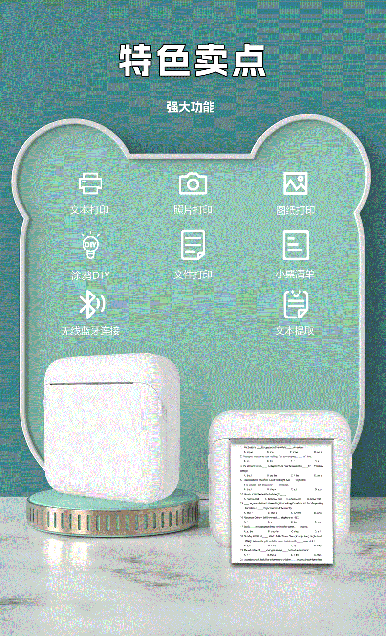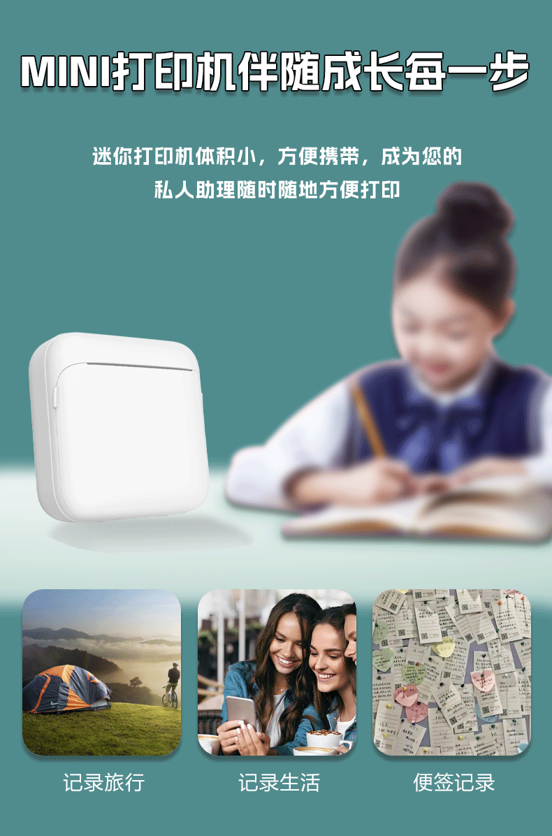 打印参数:300DPI热敏无墨黑白打印 产品重量:150g/210g 产品尺寸:85*85*38mm 彩盒尺寸:15.3*10.8*4.8cm 电池容量:1200mAh锂电池 产品条码:6971070040736