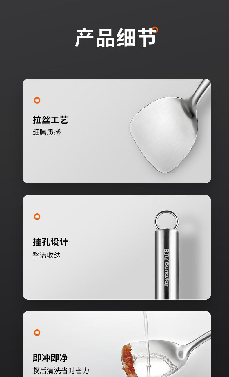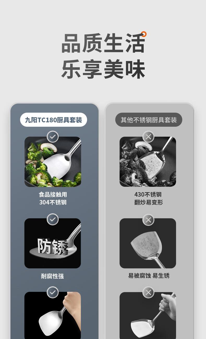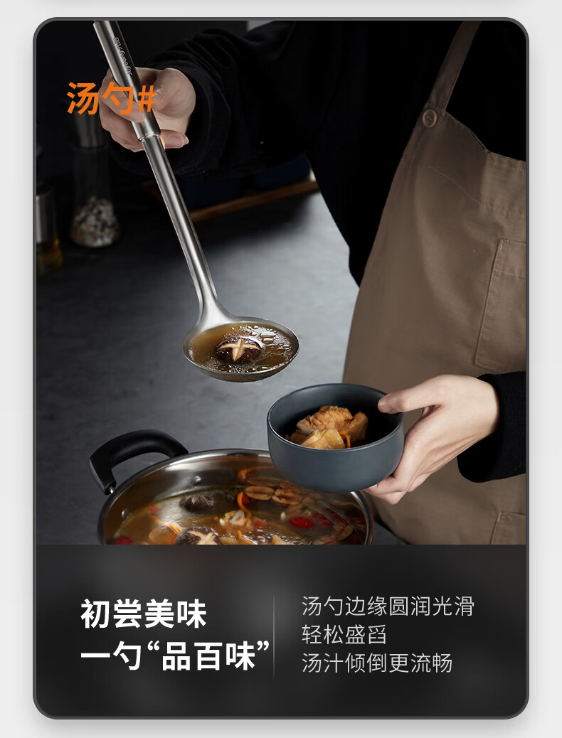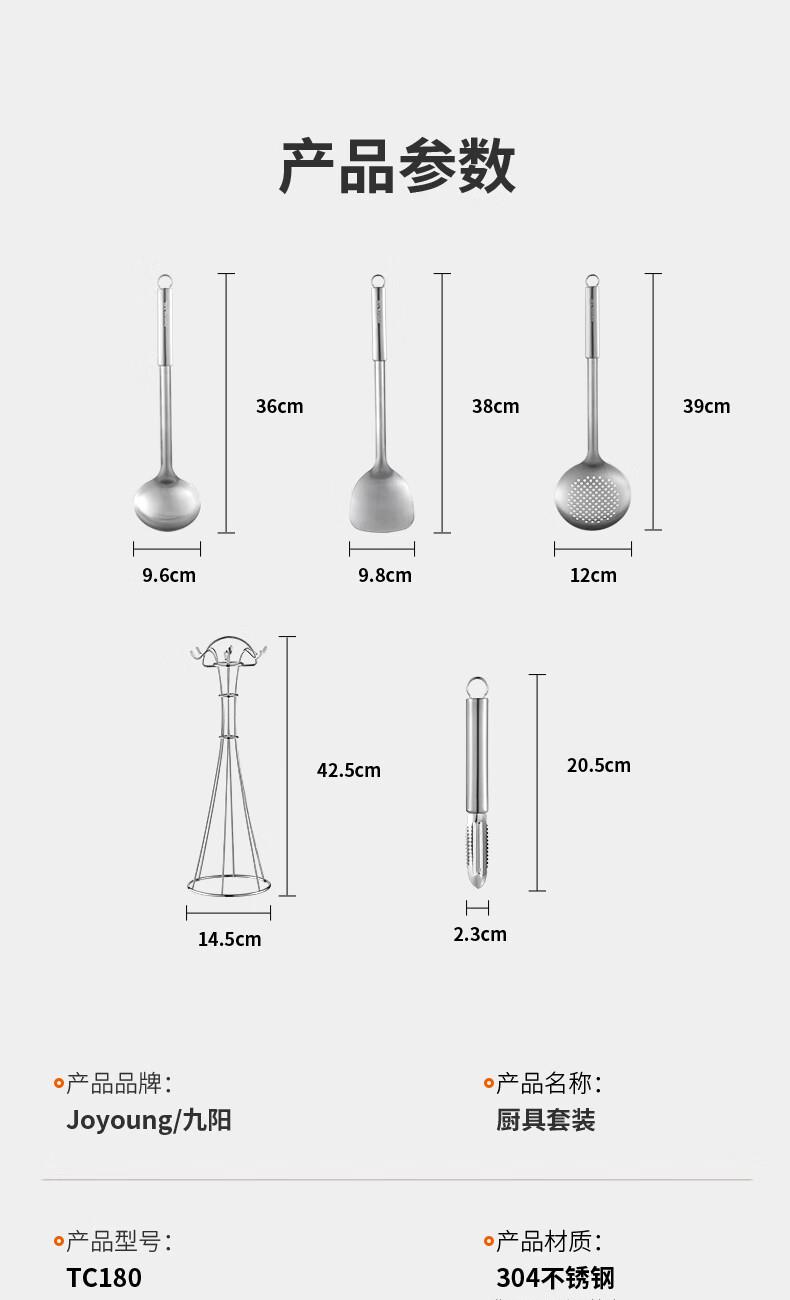 1、304优质不锈钢,耐久性不锈钢,健康材质,医 用 级 别抗 菌材质, 2、一套配齐,轻松烹饪 3、送收纳架,整洁收纳 4、中空把手,隔热防烫 5、圆滑铲边,不易伤锅 6、加长把手,握感舒适 7、环保包装,一件12台