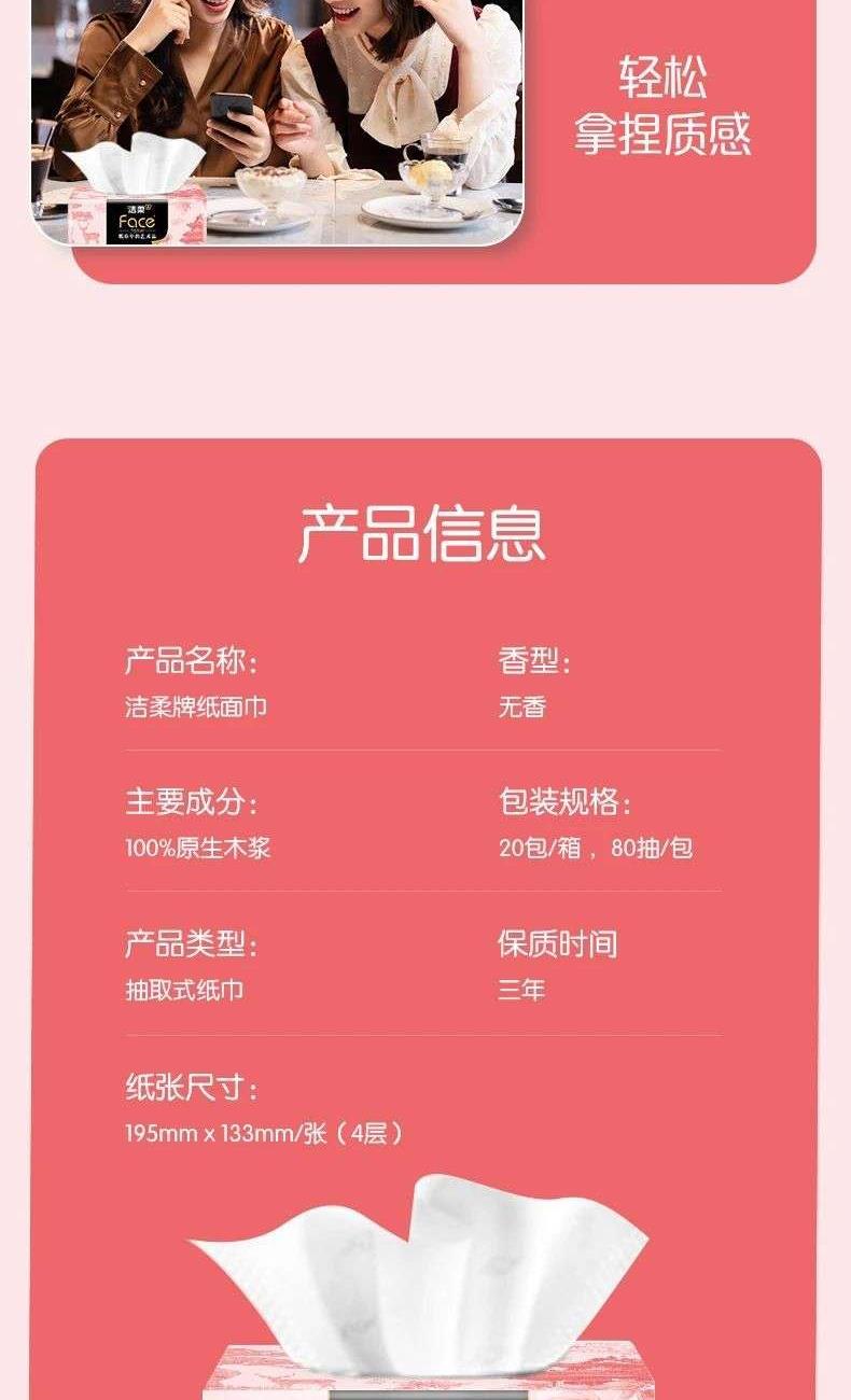 洁柔牌纸面巾(锦绘芳华软抽)80抽4层(20包装)