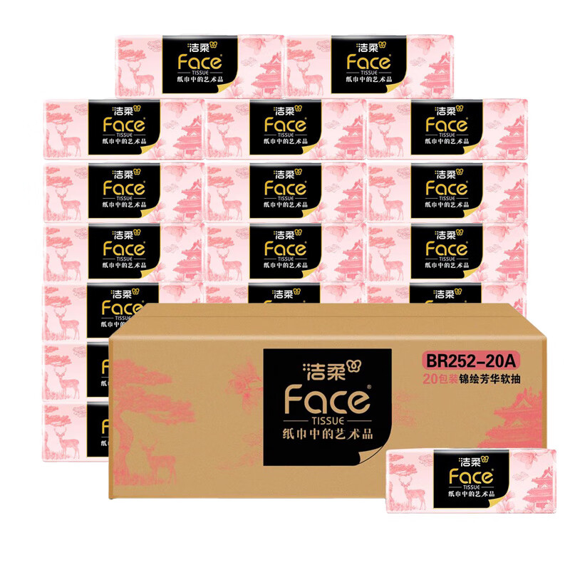 BR252-20A洁柔牌纸面巾(锦绘芳华软抽)80抽4层(20包装) 20包/箱 整箱