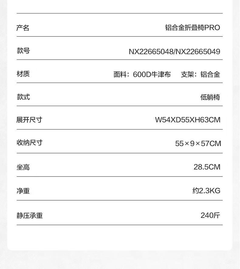 牧高笛山川铝合金折叠低躺椅pro型号NX22665048