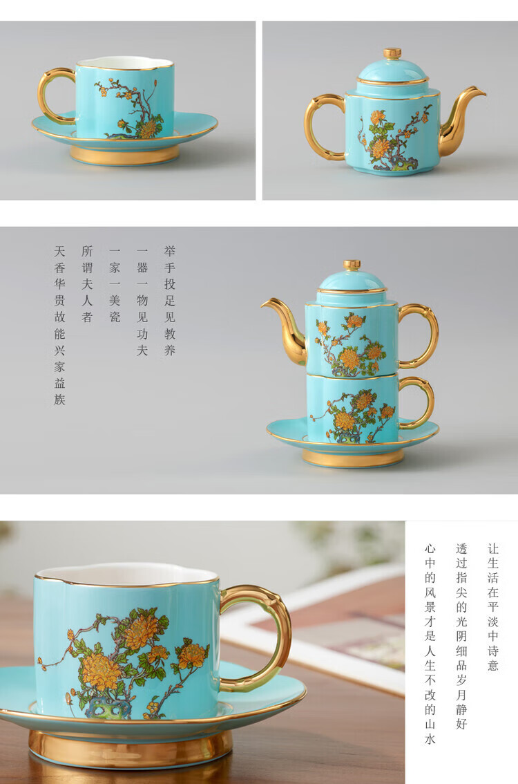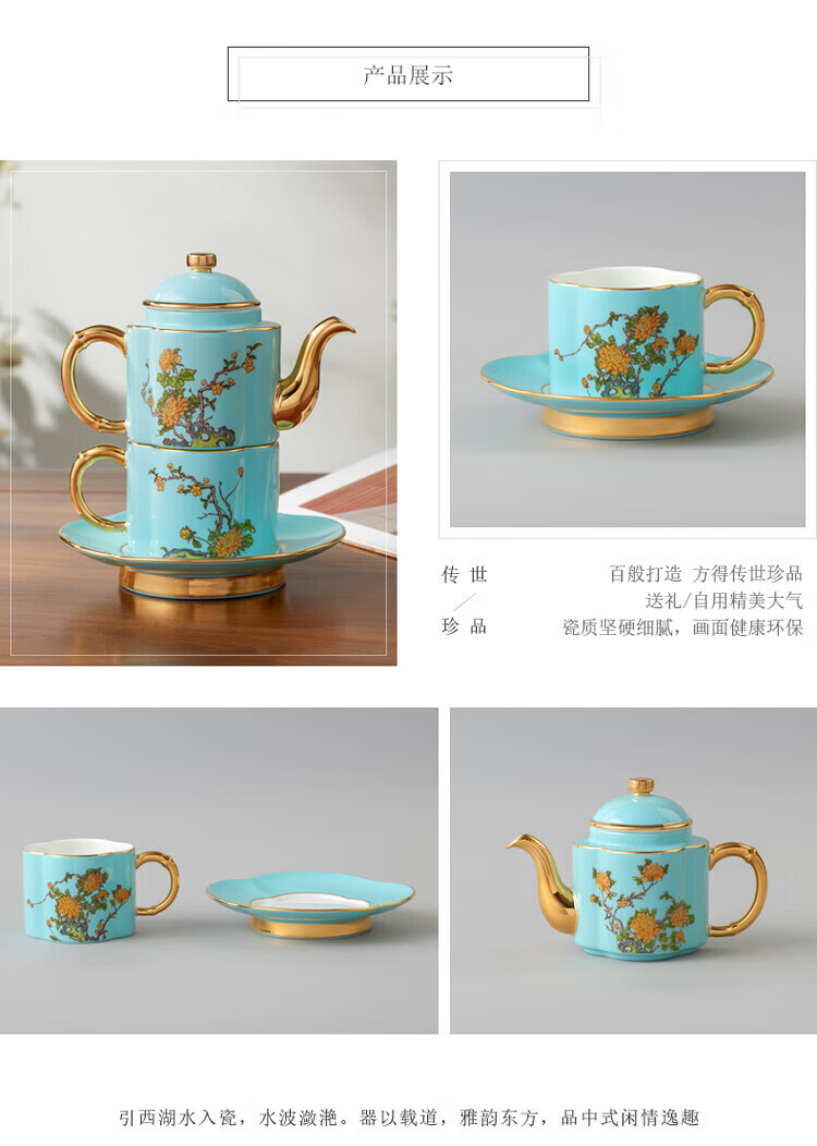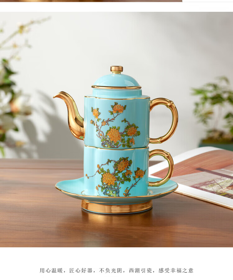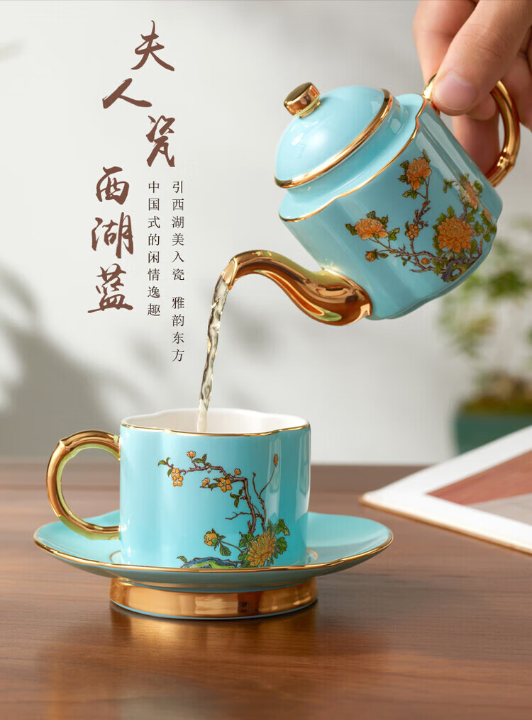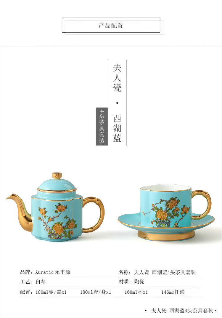 夫人瓷·西湖蓝--4头茶具(180ml)