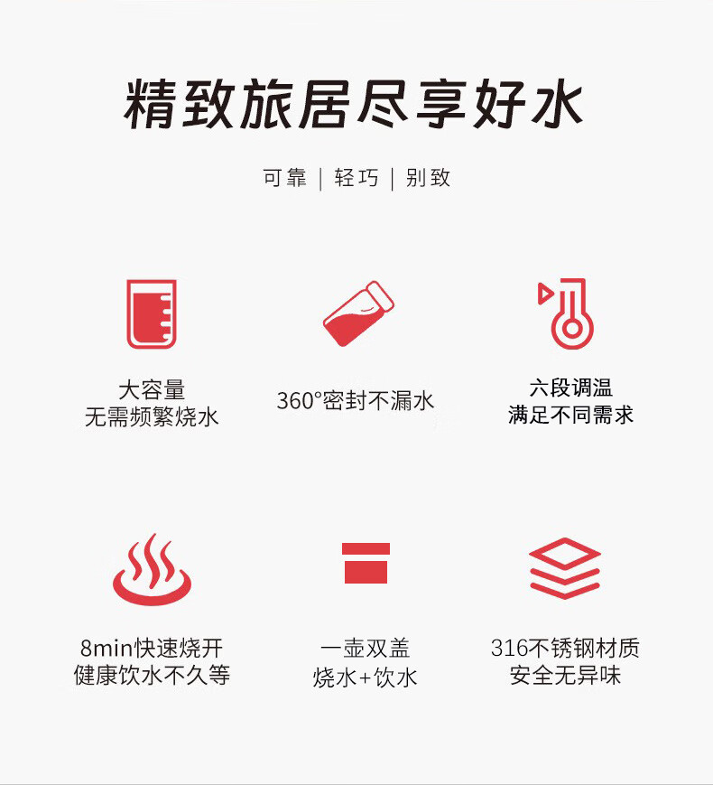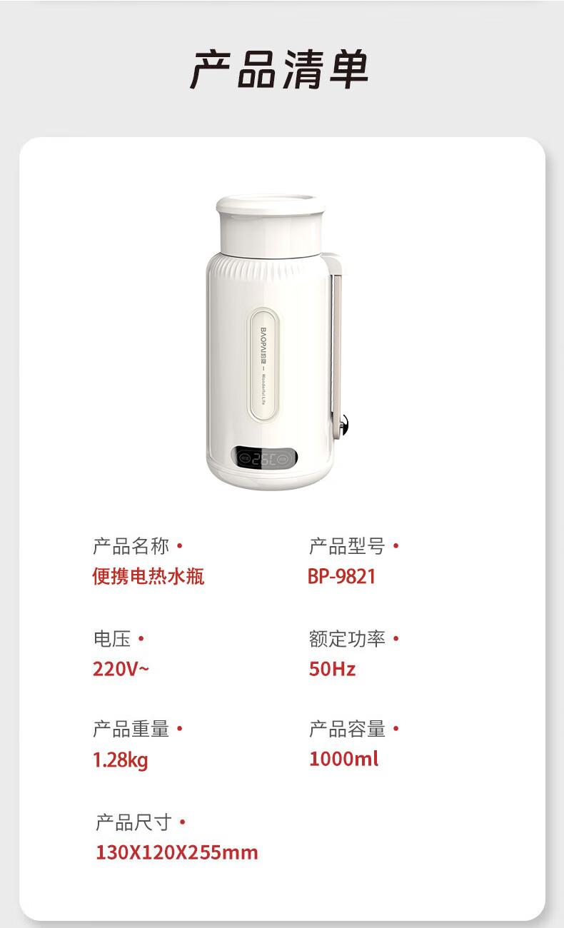 产品材质:PC+ABS+PP+316不锈钢 额定功率:800W 额定容量:1.0L 额定电压:220V~50Hz 产品重量:1.28kg 产品尺寸:130*120*255(mm) 包装尺寸:163*163*280(mm) 装 箱数量:16台 外箱尺寸:727*361*615(mm)