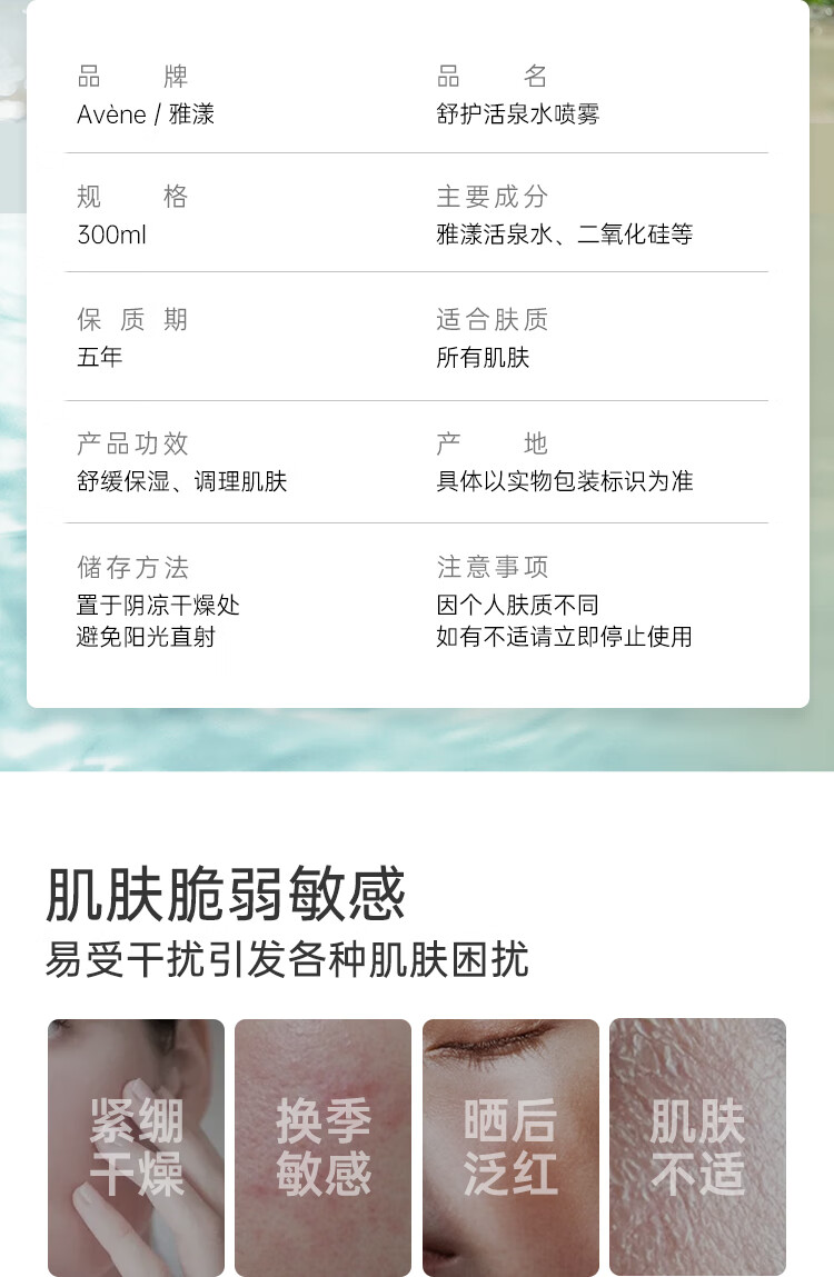 规格:300ml 保质期:五年 产品功效:舒缓保湿、调理肌肤