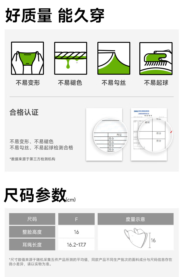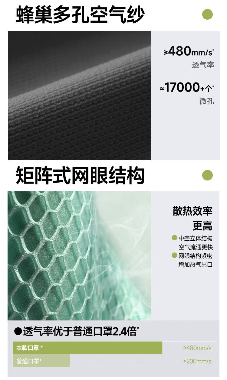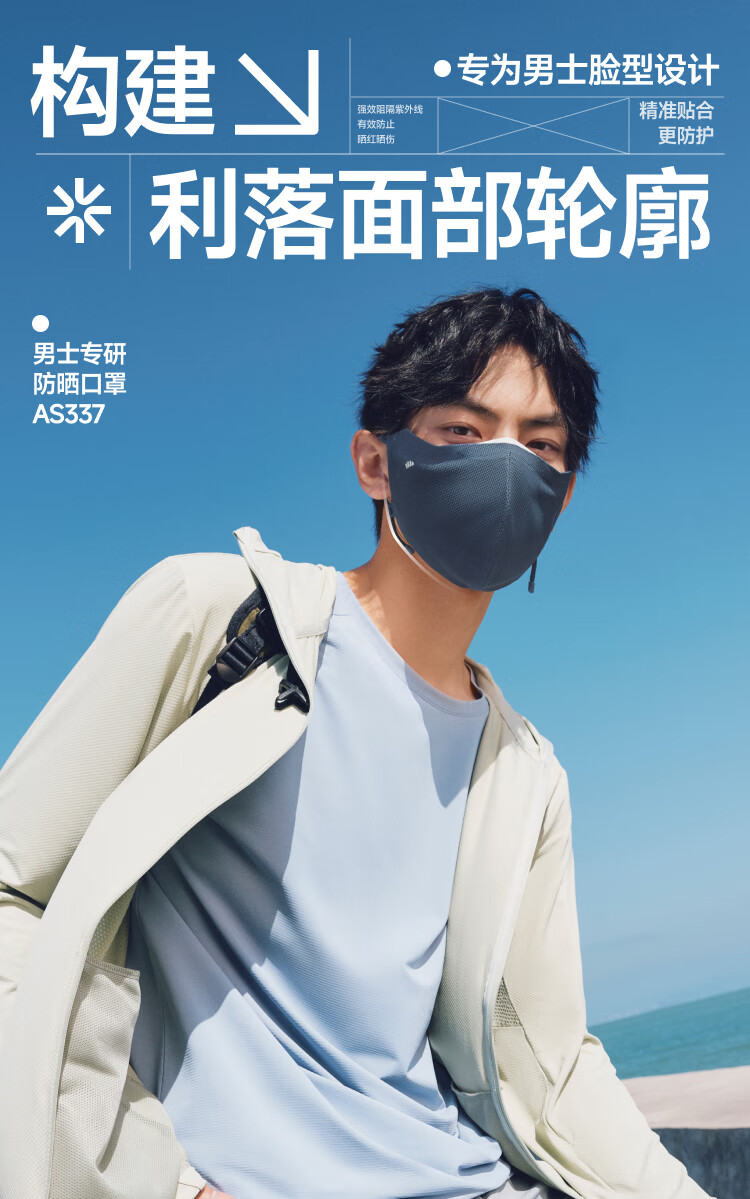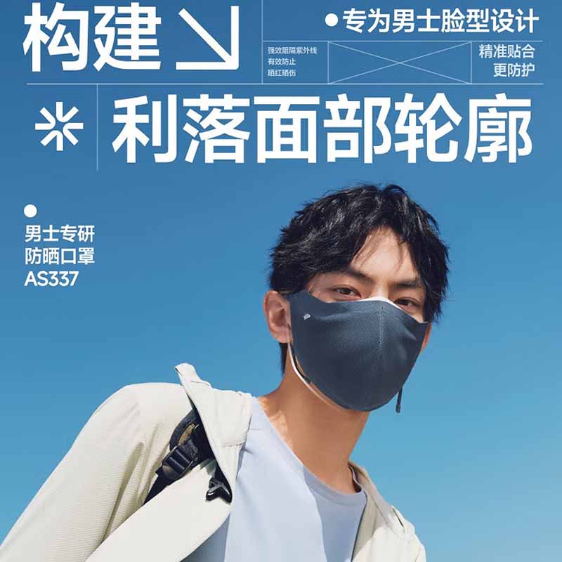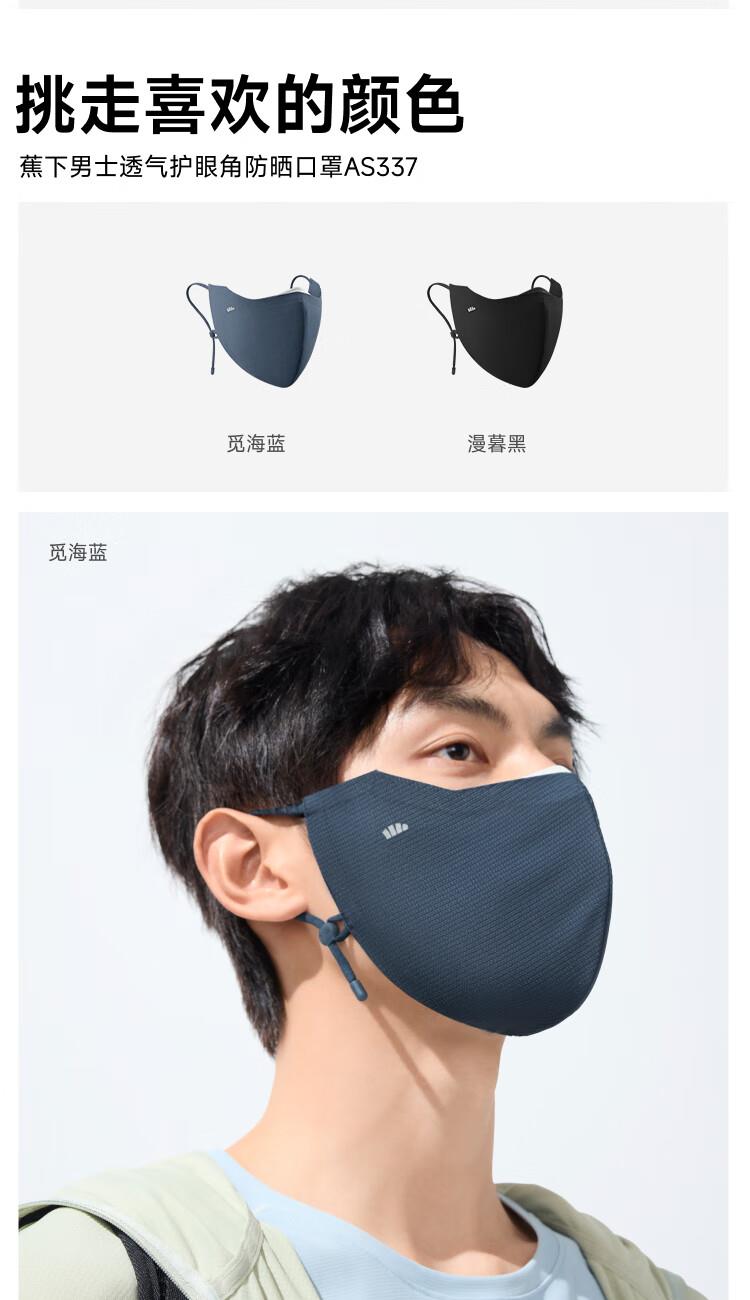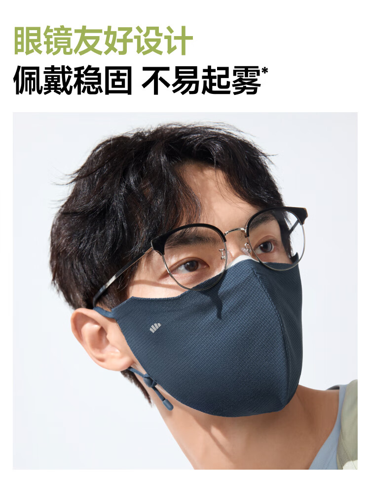 眼镜友好设计佩戴稳固、不易起雾 透气率优于普通口罩2.4倍、畅快呼吸不闷热 UPF50+原纱防晒有效阻挡紫外线、不怕晒伤晒红