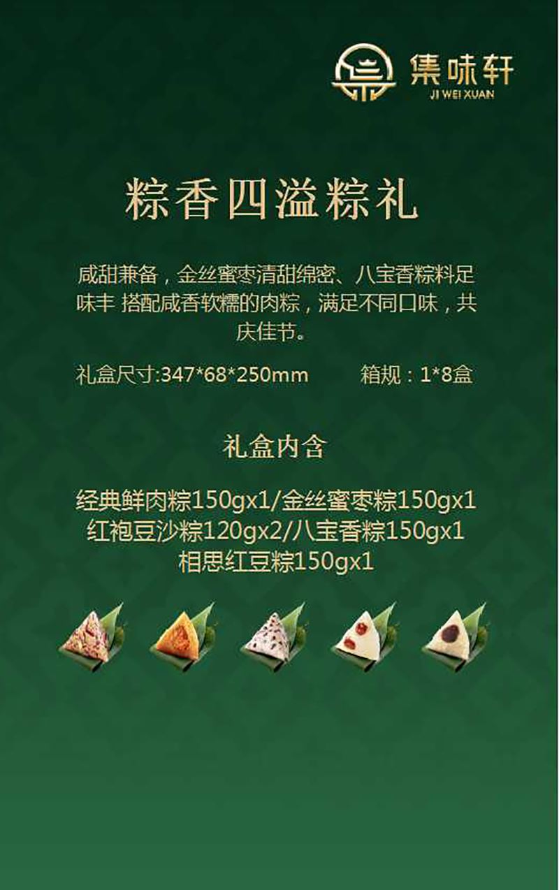 经典鲜肉粽150gx1 金丝蜜枣粽150gx1 红袍豆沙粽120gx2 八宝香粽150gx1 相思红豆粽150gx1