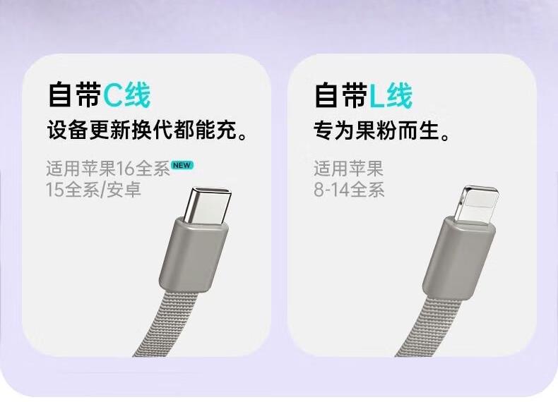 Type-C线输出:5V-3A9V--2.2A12V1.65A10V-2.25A