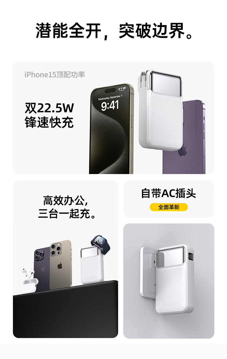 MOYEEO直插自带线快充移动电源Y08