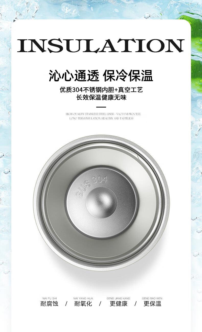 杯身材质:内胆SUS316不锈钢(拉伸工艺) 塑 料 件:PP(食品接触用) 密 封 圈:硅胶(食品接触用)