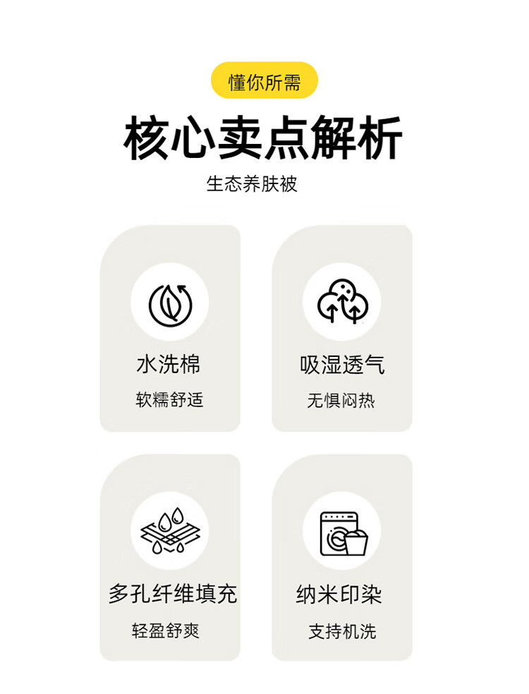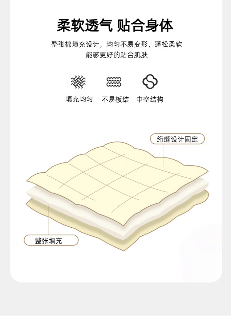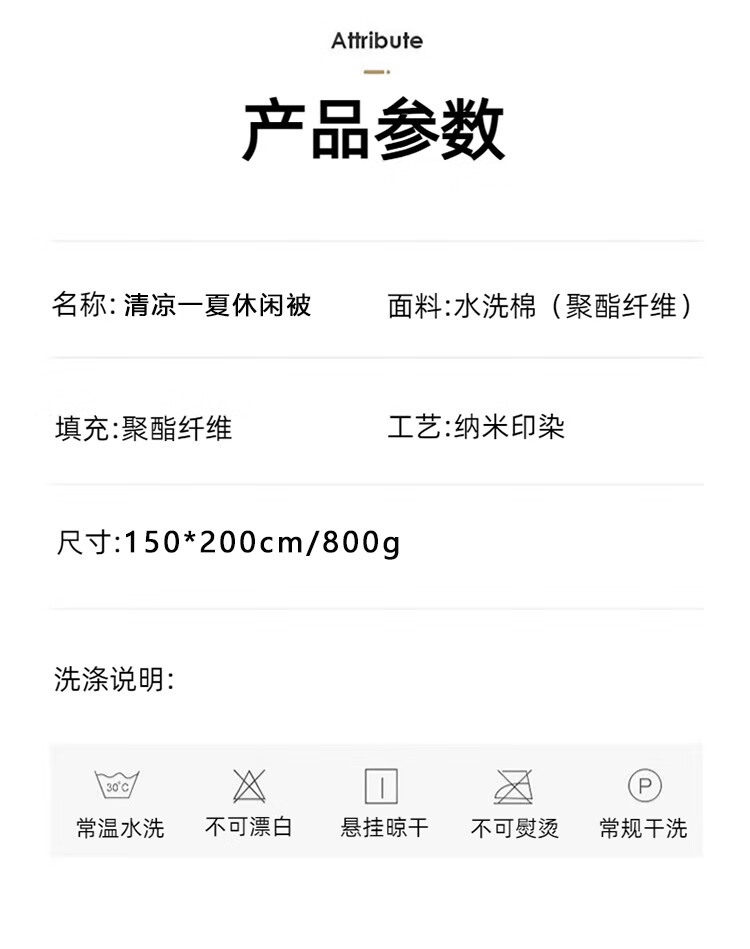 面 料:水洗棉(聚酯纤维) 填 充:聚酯纤维 装 箱:20床/件 礼盒尺寸:37*35*12cm