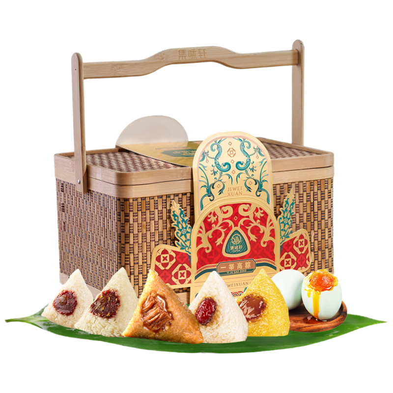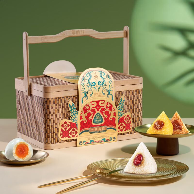 经典鲜肉粽150g*2 原味红枣粽150g*2 黄米蜜枣粽150g*2 桂花豆沙粽150g*2 细沙枣泥粽150g*2 咸鸭蛋65g*4