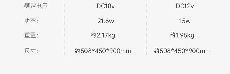功率:21.6W 重量:2.98kg 装 箱数:1台 /箱 产品尺寸: 508*450*911 外箱尺寸: 380*162*570 颜色:白色
