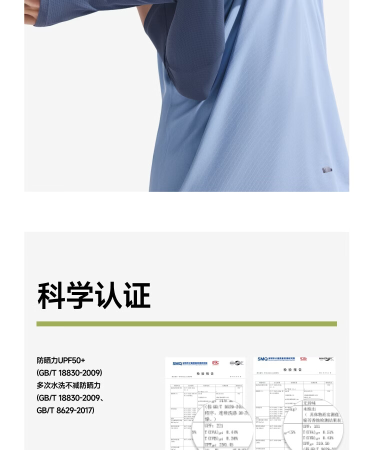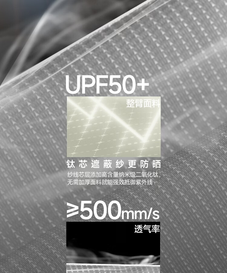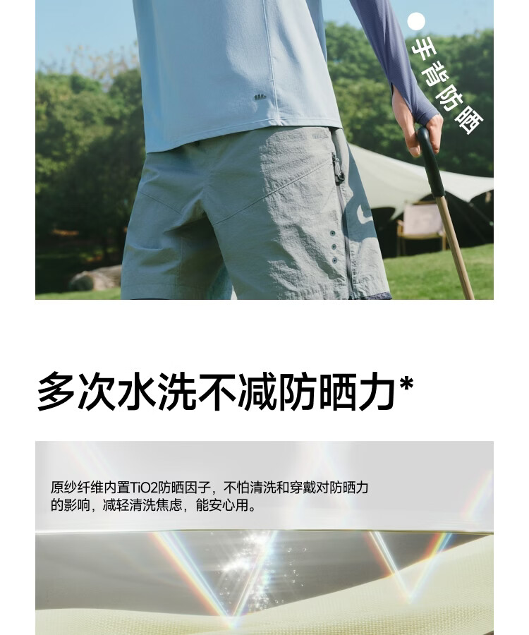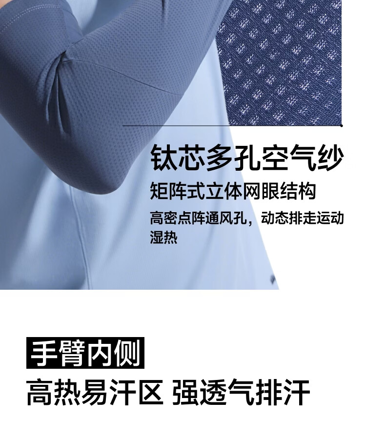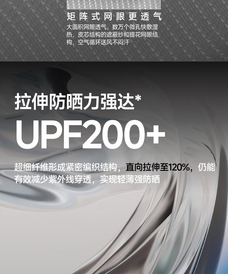 轻薄暴汗不粘腻、秒速凉面料散热更快面料高透气皮肤风感更强、紫外线阻隔率≥99%多次水洗、洗后防晒力不减