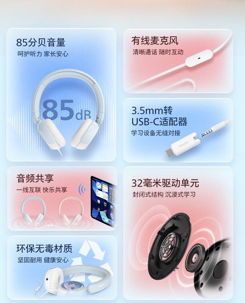 飞利浦(PHILIPS)TAK2000 头戴式有线儿童耳机