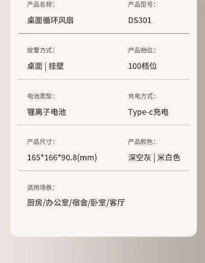 邦德桌面循环挂壁风扇(充电款)DS301