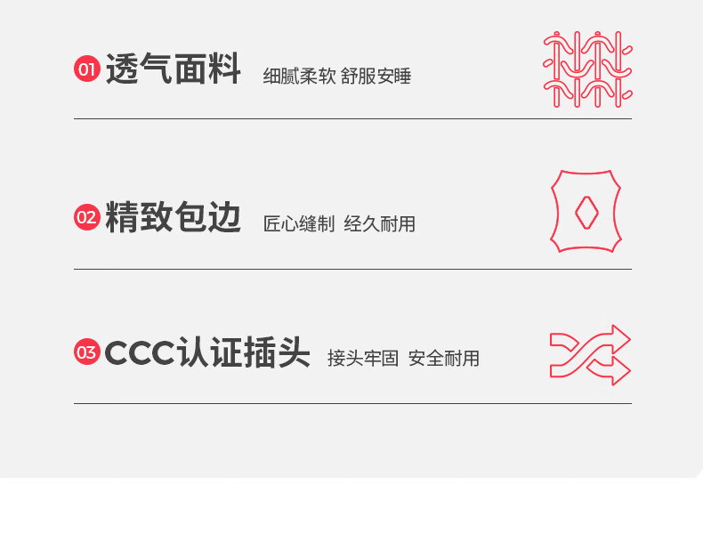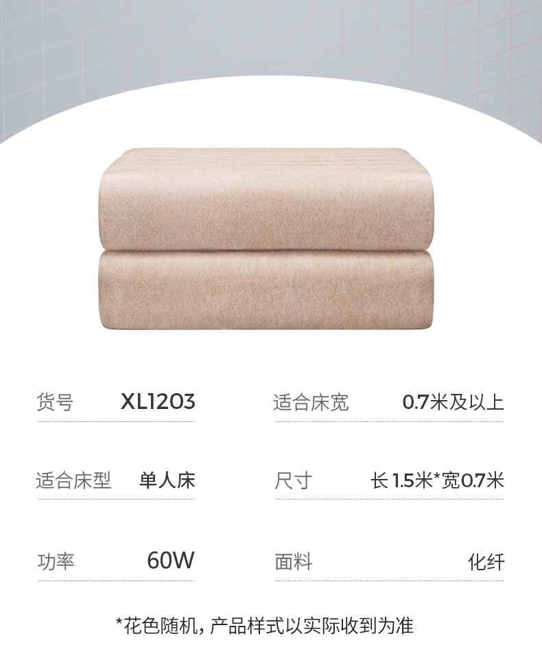 ①货号:XL1203 ②尺寸:1.5米*0.7米③面料:化纤 ④功率:60W