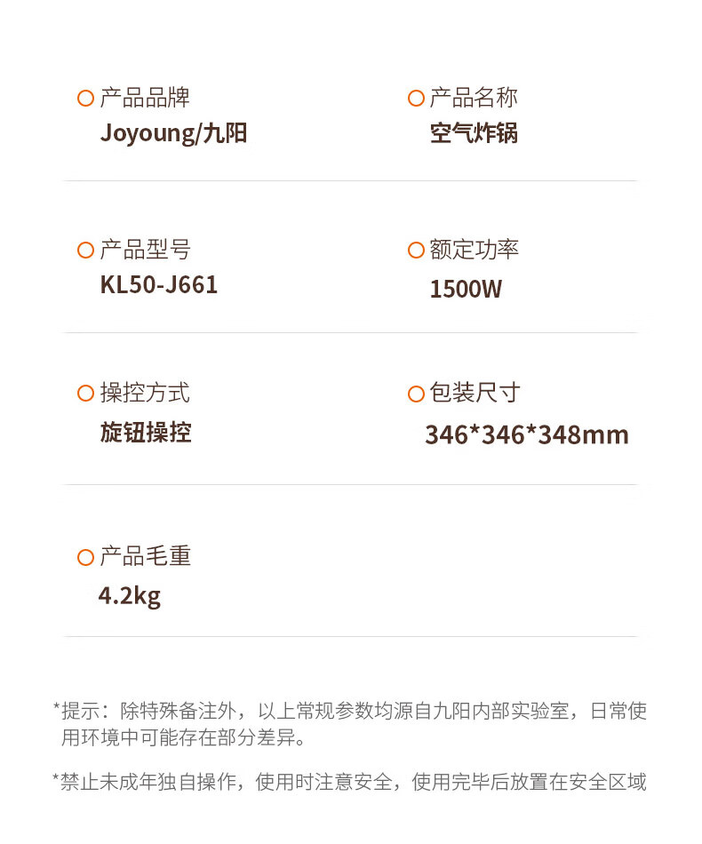 九阳空气炸锅KL50-J661(升级5L)