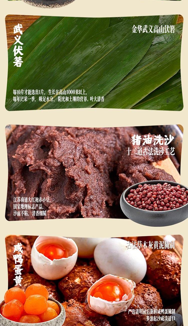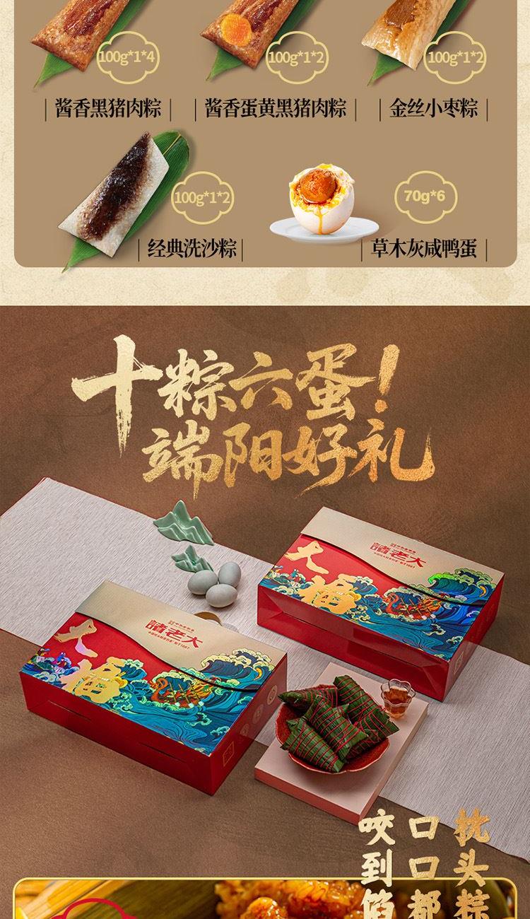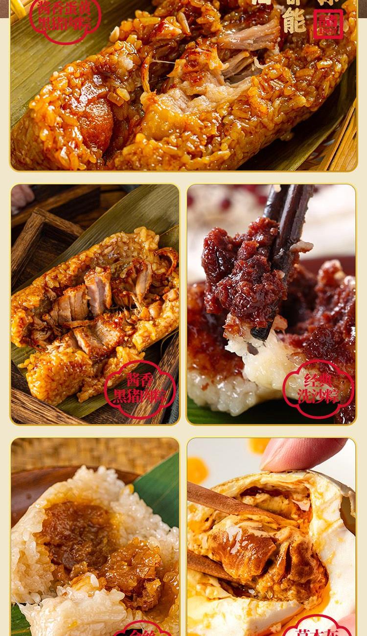 100克*4真空酱香黑猪肉粽 100克*2真空酱香蛋黄黑猪肉粽 100克*2真空金丝小枣粽 100克*2真空经典洗沙粽 70克*6真空草木灰咸鸭蛋
