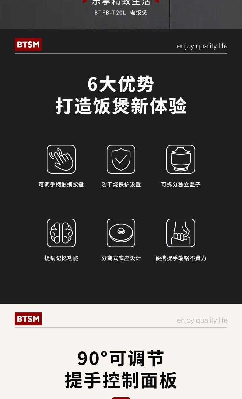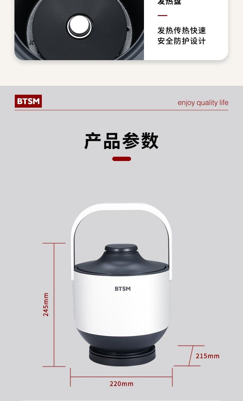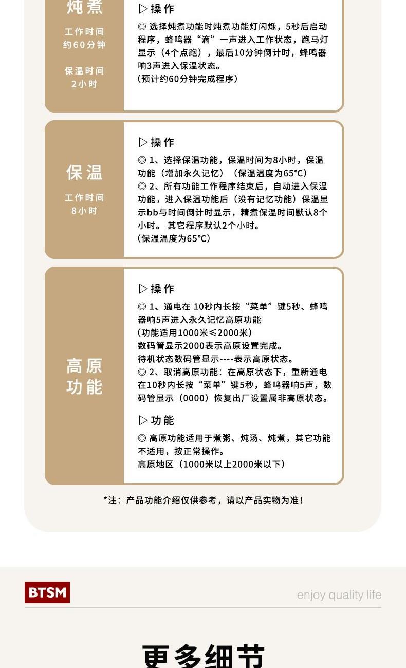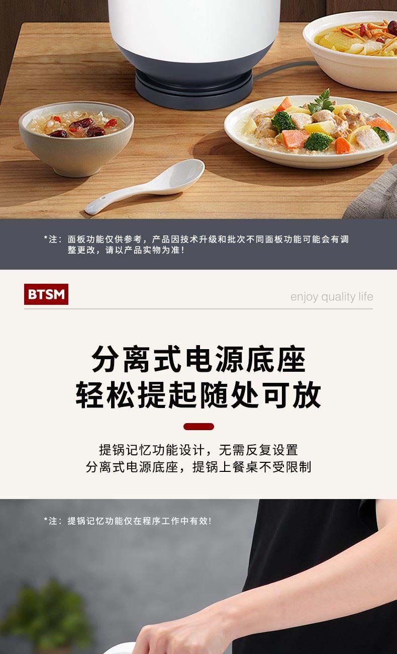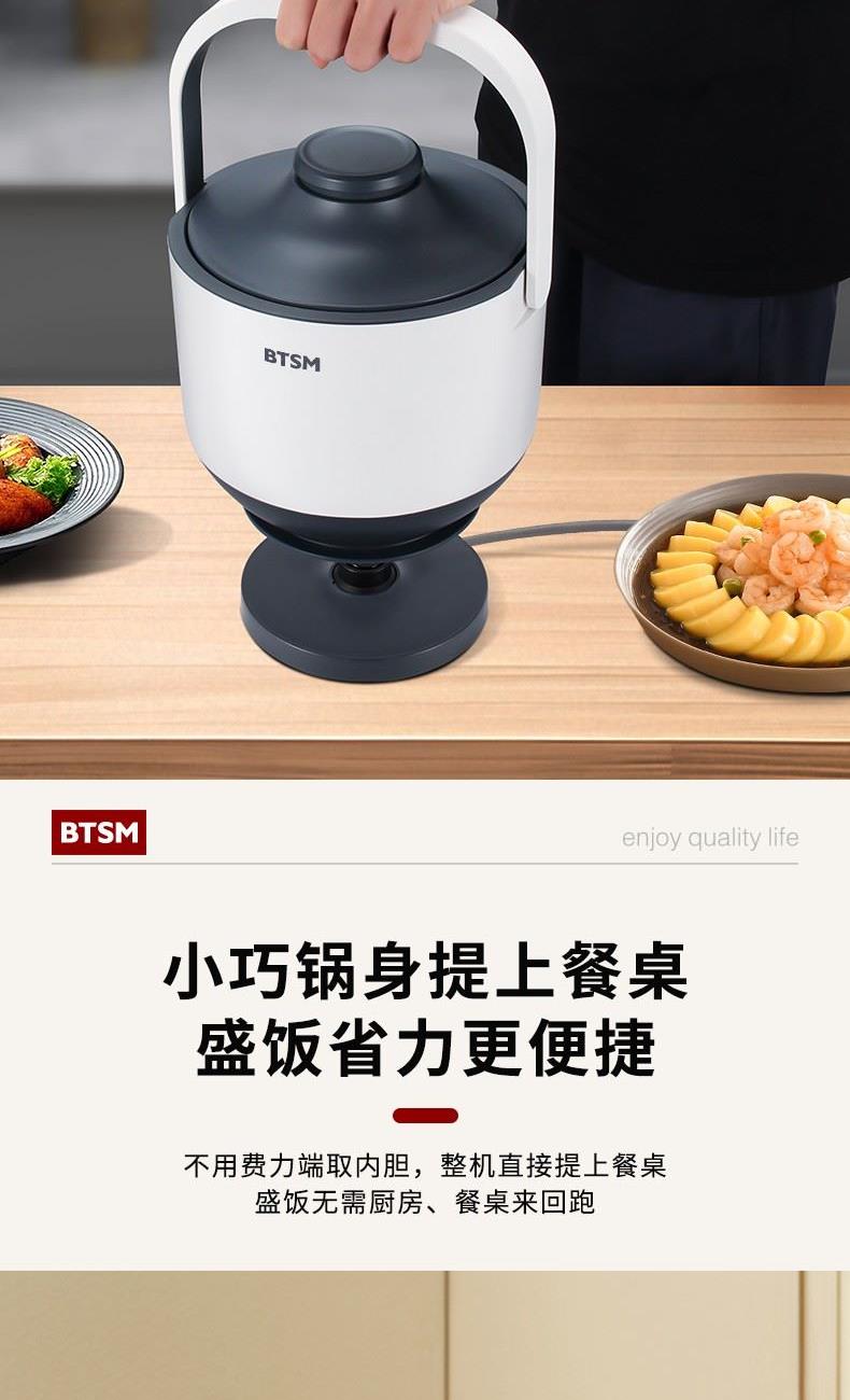 额定功率:400W 额定电压:220V~ 额定频率:50Hz 额定容量:2L 产品尺寸:260*210*320mm 产品材质:PP外壳 产品净重:约2.2kg(以产品实物为准) 加热方式:发热盘条 形 码:6971679081734 彩箱外尺寸:285*255*265mm 电源线外露长度:0.75m 装 箱清单:电饭煲*1、盖子*1、内胆*1、 电源底座*1、饭勺*1、量杯*1、 说明书*1