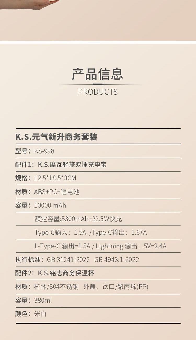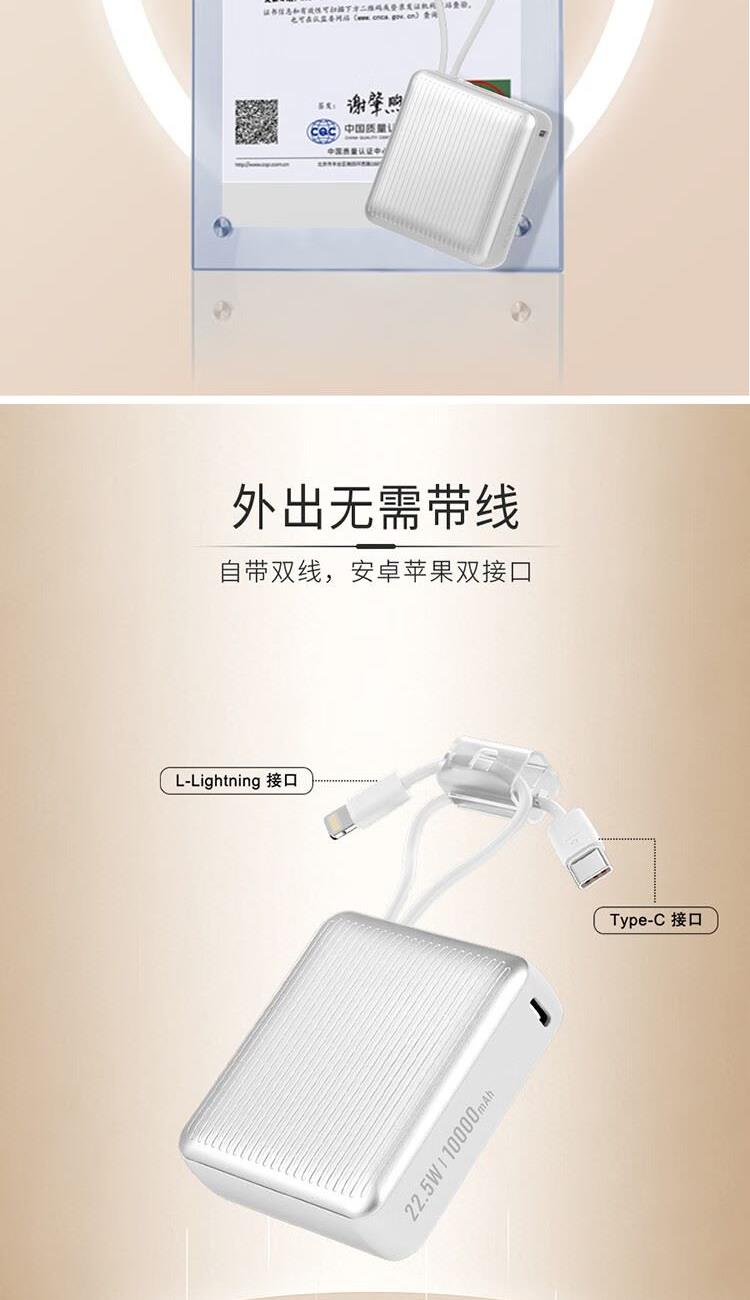 规格:充电宝/10000mAh 额定容量:5300mAh+22.5W快充
